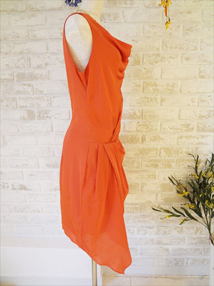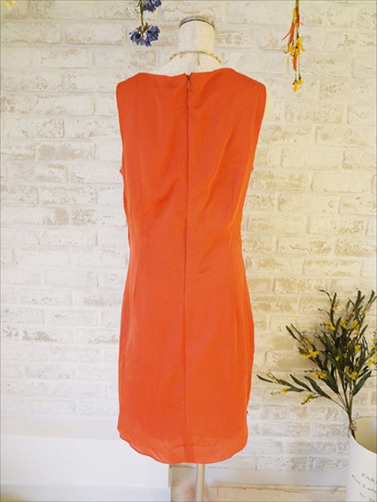 明るめのオレンジシフォンドレス。他と被らないこだわったデザインになっております。オレンジで華やかで春から秋にかけてがおすすめな一着で一枚で着てもとても可愛いです。バックは同じ系統のお色味を合わせても相性がよくゴールドやシルバーなどの王道のお色を合わせても相性が良いです。アクセサリーは華奢なデザインのものを選ぶとドレスを目立たせてくれます。パーティーや謝恩会にぴったりな1着です。