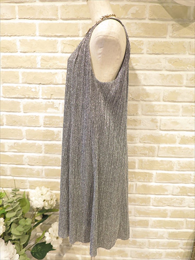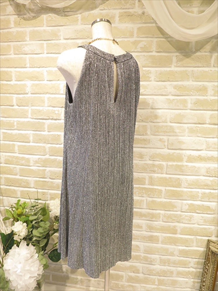 グレーのキラキラドレス。グレーなのでキラキラしていても派手すぎず、地味すぎないです。背中の少し開いている感じもおしゃれで可愛いです。単色なので、小物に色を入れて持っていただくのもありですし、パーティーにオススメなドレスとなっております!