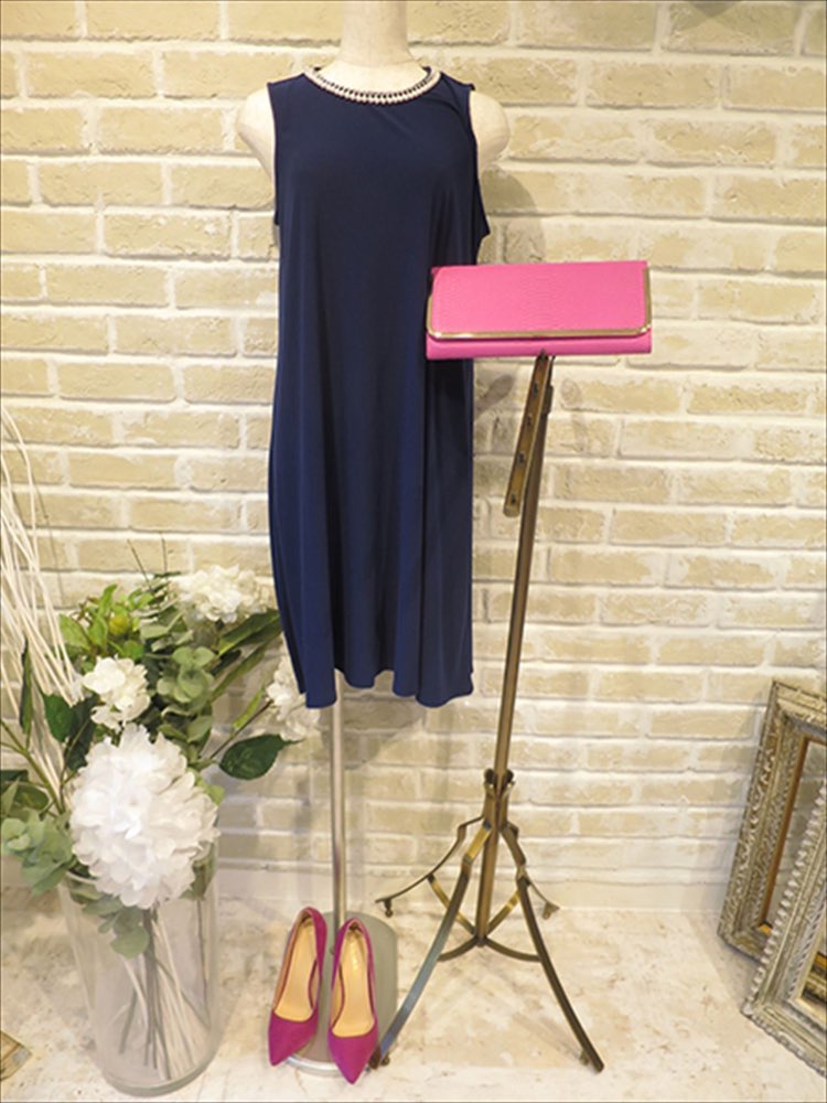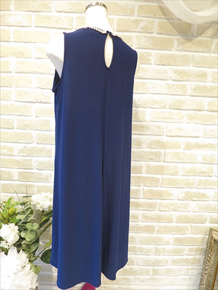 ブルーのパーティードレスです!首元のパールがシンプルなデザインに映えて落ち着いたドレスです。ブルーは濃いブルーでトーンも暗めなので派手すぎません。生地感もゆったりと着ていただけます!首元にパールがあるので、ネックレスはつけなくても着こなせます!首元のパールと合わせて、アクセサリーもパールで合わせても統一感が出て最高です!