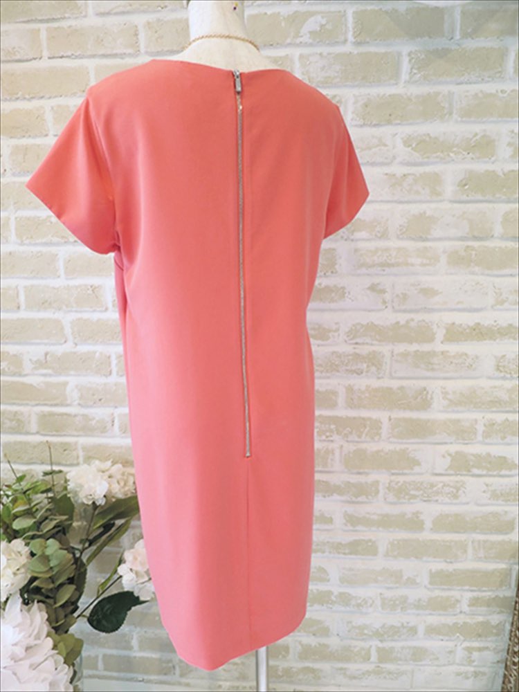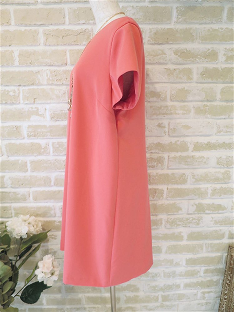 ワントーンの袖付きのドレスですが、フロントに深めのスリット入り。歩くとチラッと見える足がセクシーです。シンプルですが、とても優しいパステルに近いピンクで着こなしやすいお色になっているのと、ノースリーブではないので1枚で着こなせる良さと、腕が気になる女性の方にもピッタリなアイテムです。
