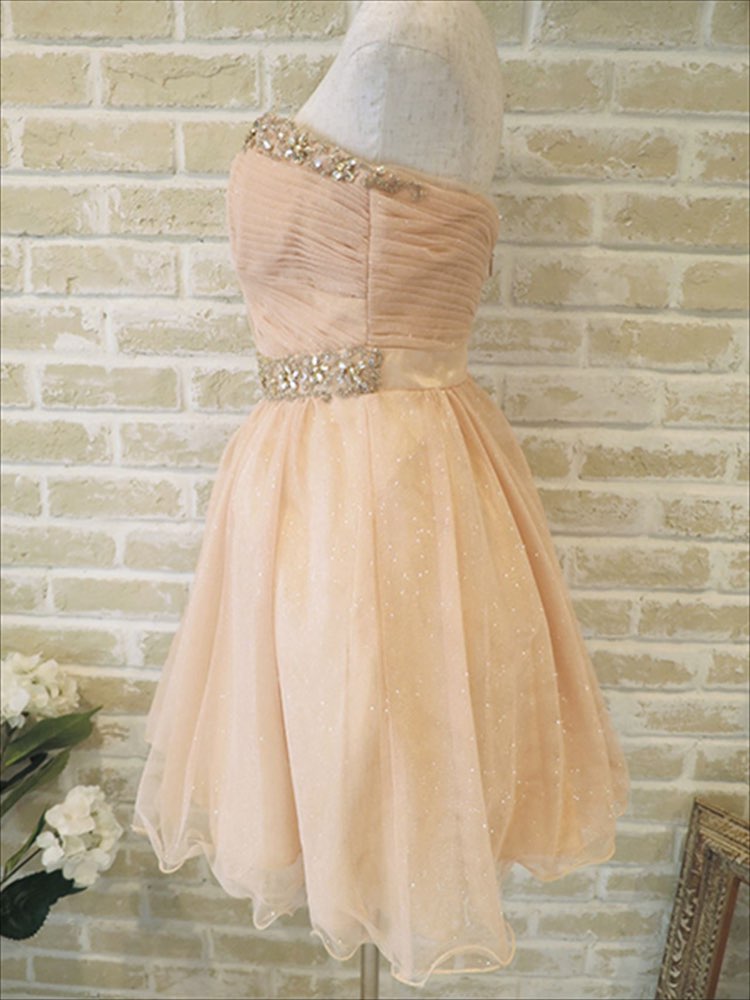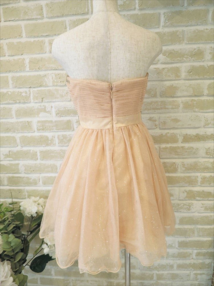 濃いめのベージュのベアドレス。ウエストと胸元のデザインが可愛いです。優しいお色味の中に、ビジュデザインがはいっており、とても華やかに美しく着れるオススメベアドレスです。クールというよりかは、キュートなイメージや印象を与えるドレスで、とても女性らしいお色味となっております。