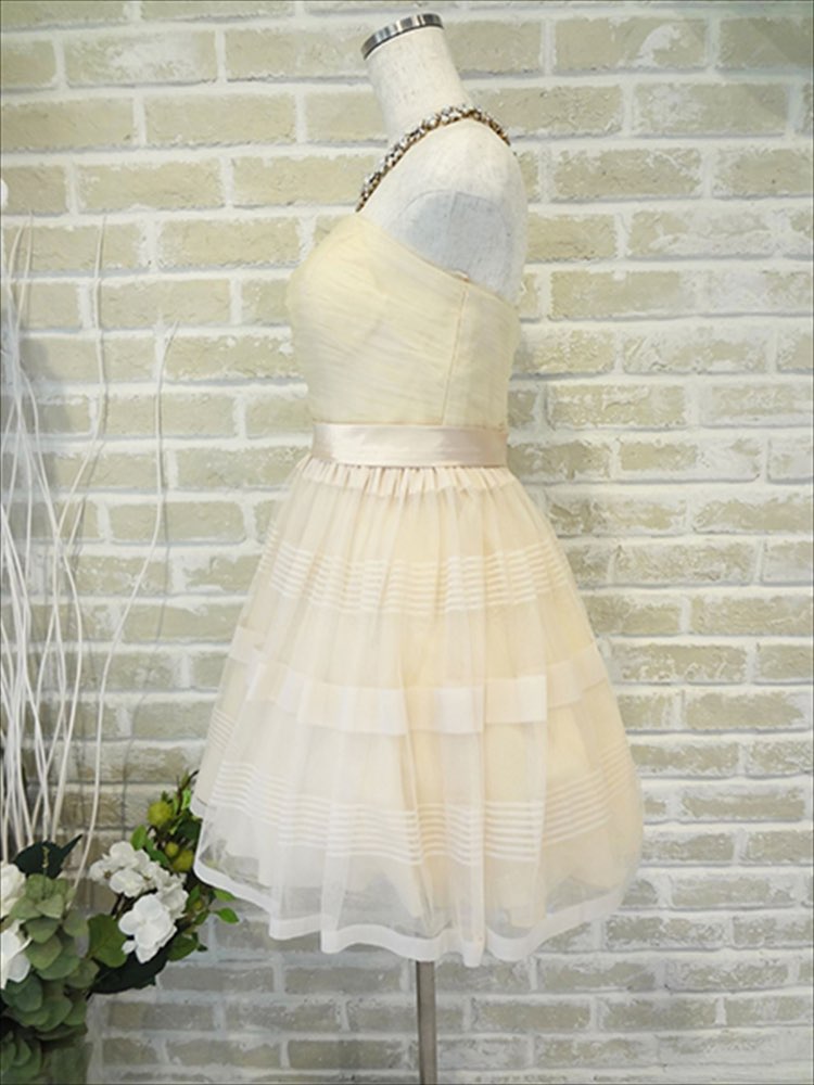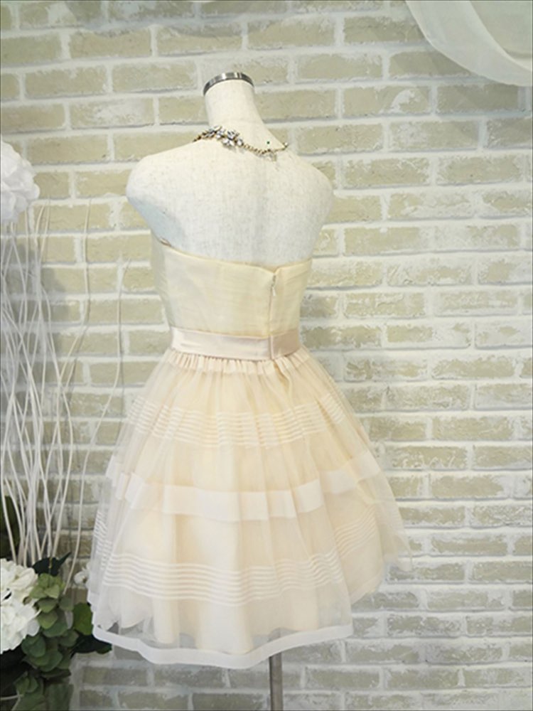 マットなベージュのベアドレス。スカート部分がチュールバルーンになっており、ストライプで可愛らしく選びやすいデザインになっています。胸下からスカートがフワフワに広がっておりパーティー・謝恩会・お友達の結婚式におすすめな1着です。素材違いのリボンがウエストラインを綺麗に魅せてくれます。お小物のバックにゴールド系で合わせも合いますが、ビビットなカラーのバックを合わせてもポイントになるので、ドレスもバックも映えるコーディネートのなります。