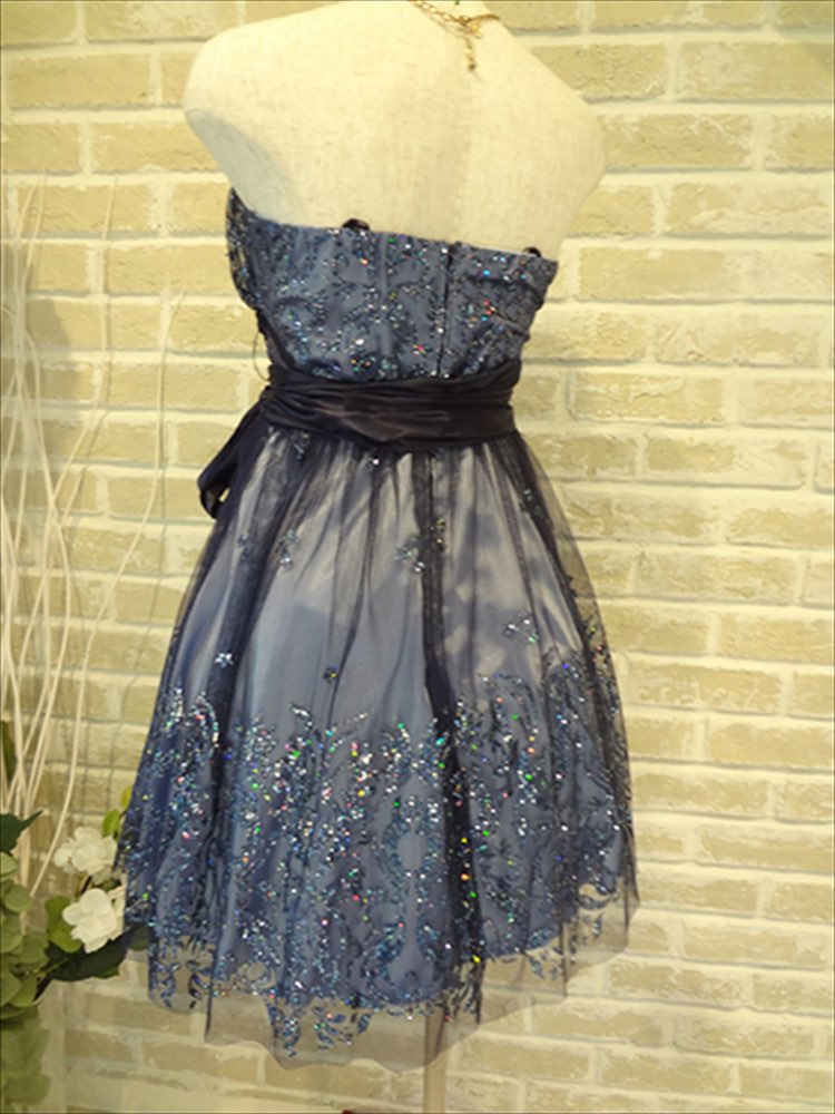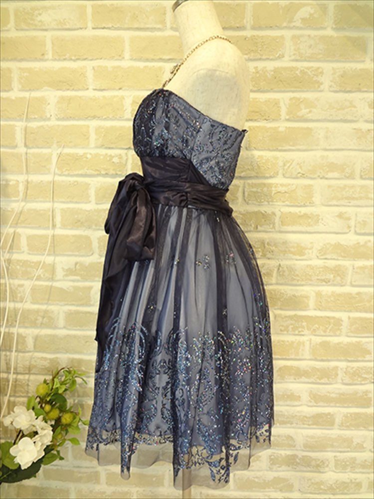 ラメ入りブルーベアドレス。胸元と袖にラメがついていて華やかでウエスト部分にはリボンもありスタイルアップも両方叶えてくれるドレスになっております。ラメがついていてキラキラするので夜のパーティにはとてもおすすめで、周りの目を引く可愛いドレスです。華やかなアクセサリーでゴージャスにまとめても良いですし、華奢なものを選んでドレスを目立たせてもおすすめです。バックはピンクや赤など暖色のカラーでポイントを入れるコーディネートがおすすめです。
