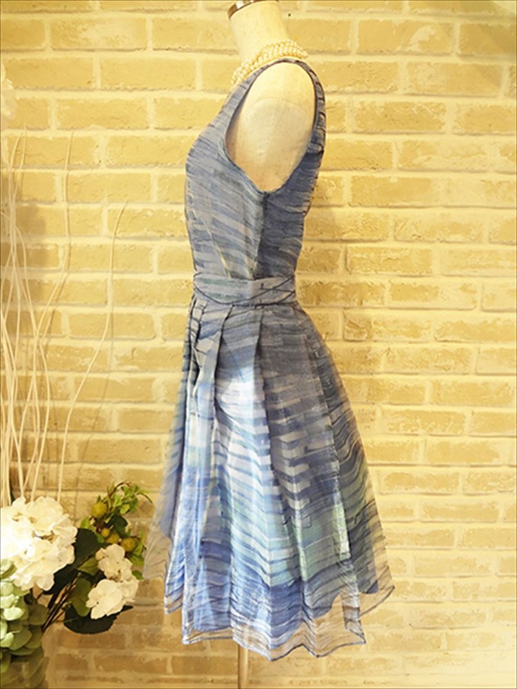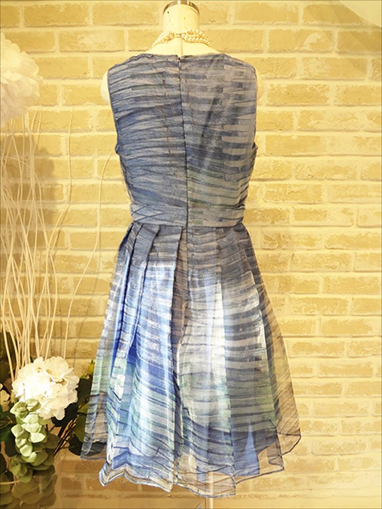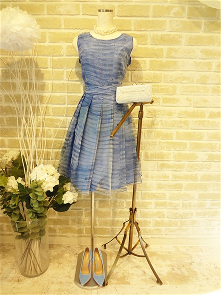 スカートにプリーツがありお嬢様風なドレスです。涼しげな色合いでさわやかな雰囲気。特におすすめなのがリゾートなどの挙式です。涼しげな雰囲気がリゾートにマッチします。淡い青なのにこんなにもお嬢様風なドレスは、他にはないような・・。そんなドレスです。