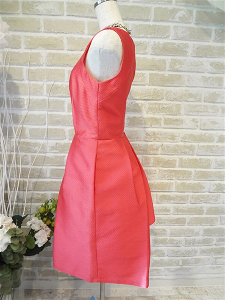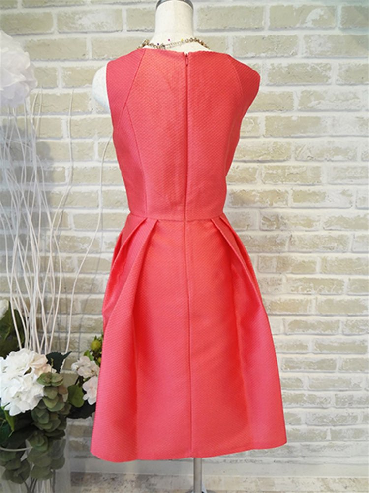 ウエストから切り返しのデザインでスカートがフワッとしていてとても可愛く小物次第ではエレガントな雰囲気にもなります。太陽のように明るくきれいなコーラルピンクなので春先~夏頃まで特におすすめしたい一着です。リゾートウエディングからゲストハウスまでと幅広く対応しています。