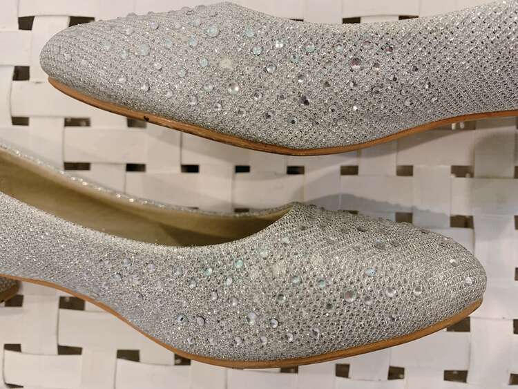 シルバーラメ×スワロフスキーローヒールパンプス 26.0cm