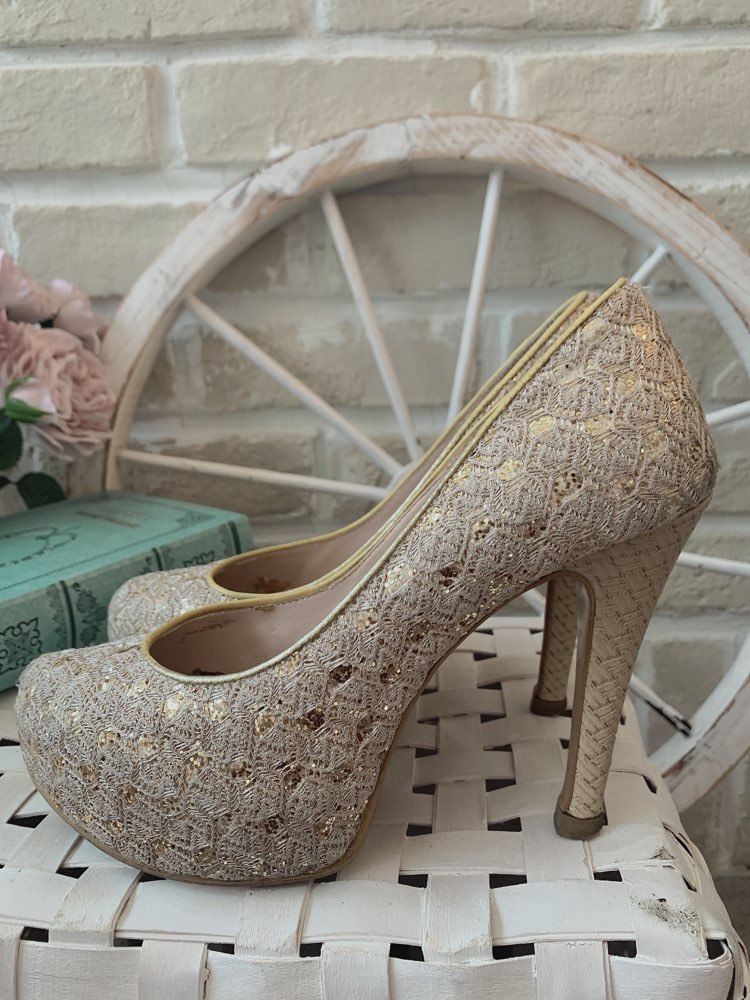 ゴールドラメレース×網ヒールパンプス 23.5cm
