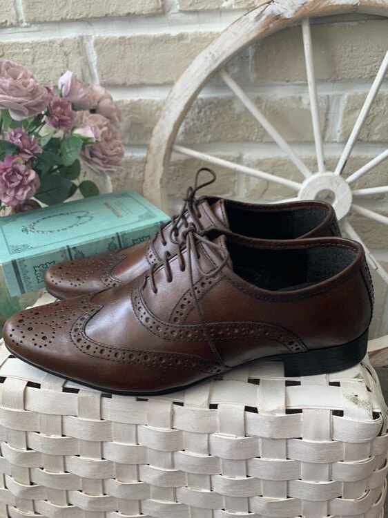 暗めブラウンカラーのウィングチップシューズ です。ネイビーや柄入りのタキシードなど、カジュアルなコーディネートと相性抜群です。