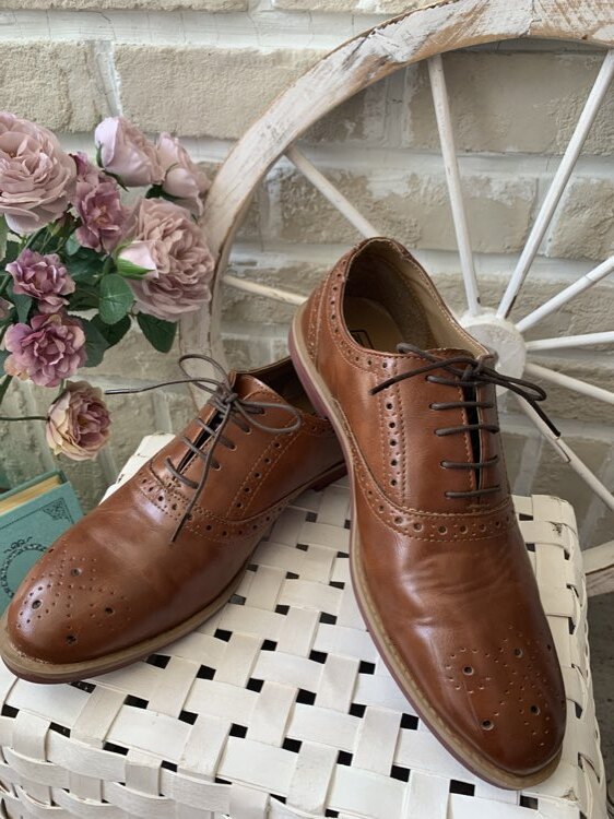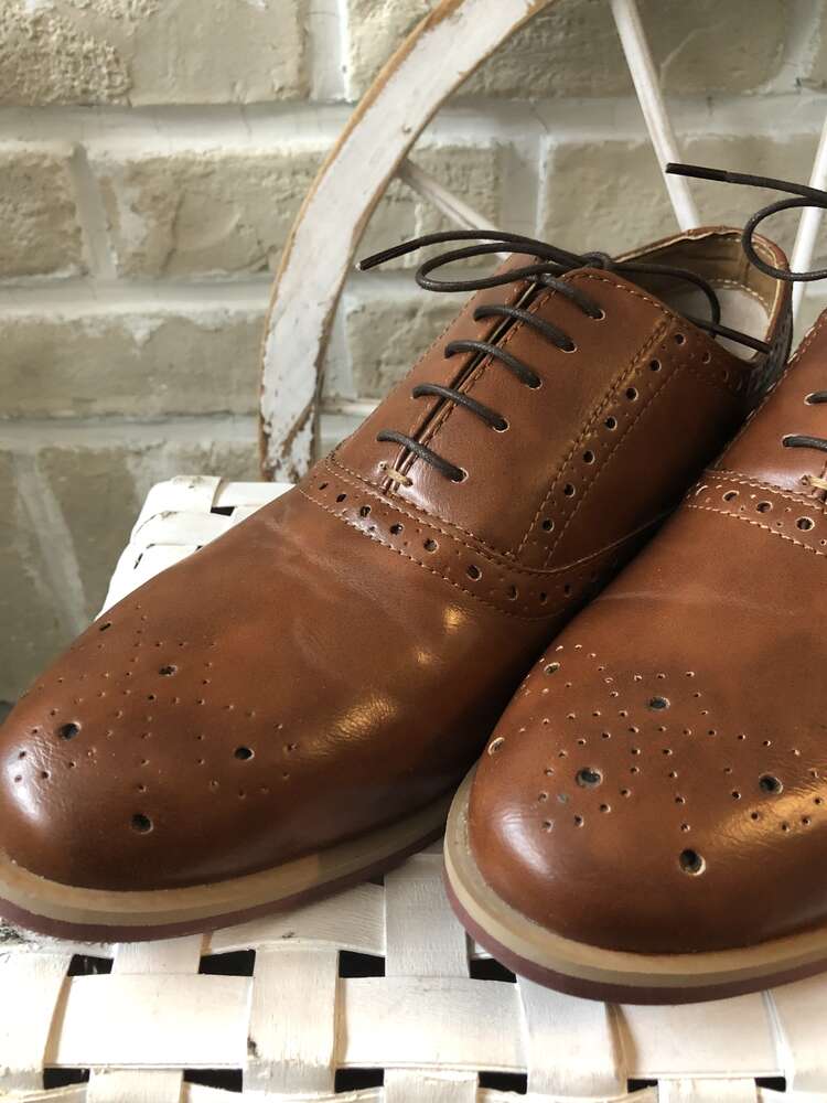 明るめのキャメルカラーレースアップシューズです。ネイビーや柄入りのタキシードなど、カジュアルなコーディネートと相性抜群です。