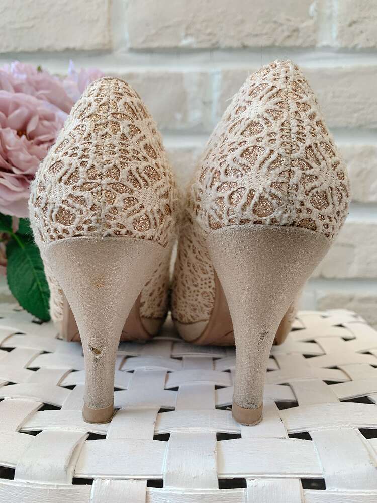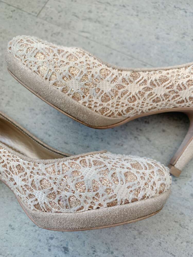 アイボリーレースパンプスです。22.0cmなので、小さめサイズをお探しの方にオススメ。