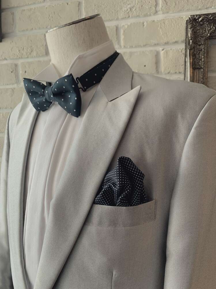 落ち着いたネイビーにホワイトのドット柄が入ったポケットチーフです。ドットが細かいので、カジュアルになりすぎず、フォーマルなコーディネートにも合わせやすいです。ホワイト、シルバー、ブルー、グレーのジャケットと相性が良いです。チーフをプラスするだけで、オシャレなコーディネートに仕上がります。