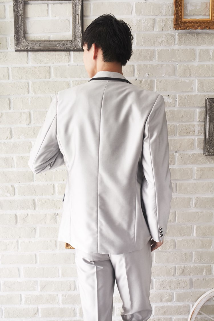 <XXL>シルバー×ブラックパイピングタキシードジャケット