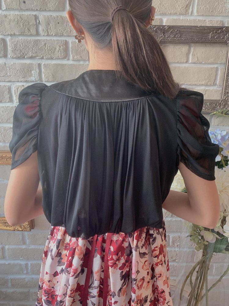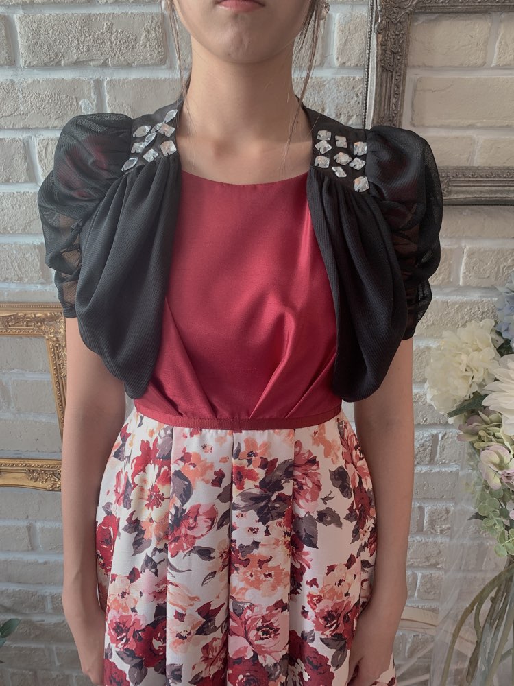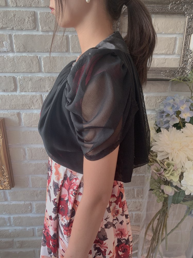 ブラックのパワショルスリーブボレロ。肩には華やかなの大粒のビジューがキラっと光り、羽織るだけでドレッシーなボレロです。普段ネックレスを着け慣れない方や、金属アレルギーでネックレスが着けられない方にもおすすめです。装飾のないシンプルなドレスにはもちろん、ジャケット風な雰囲気になるので、クールでタイトなシルエットのドレスにもぴったり。柔らかい生地で着心地も良く、袖は透け感もあり黒でも重たくなくお召いただけます。さらに、襟元なサテンの光沢感がエレガントに仕上げてくれます。結婚式のお呼ばれはもちろん、謝恩会や成人式などのパーティー、懇親会など幅広いシーンでご利用頂けます。