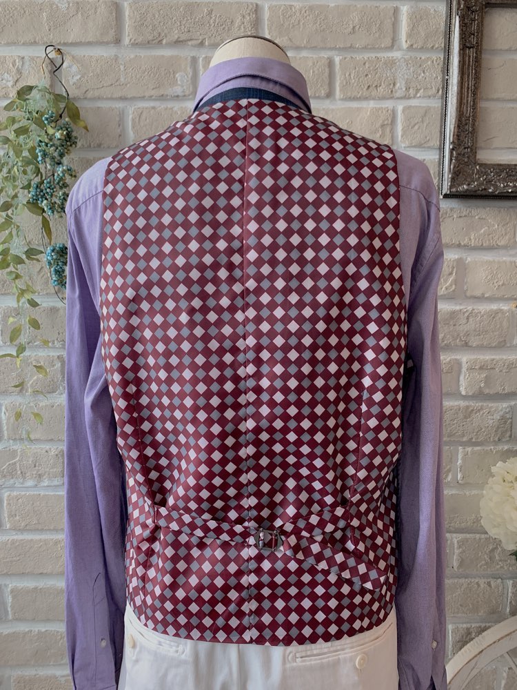 ブルーのチェック柄ベストです。グレー、ホワイト、ブラックなど無地のジャケットや、パンツはホワイトデニムや、グレー、ブラック、ネイビーの無地パンツでも合わせやすい万能なチェックベストです。また合わせるシャツをデニム素材、細かなドット柄、ライトブルー、ライトグレーシャツで合わせてカジュアルな二次会タキシードとしてもオシャレに仕上がります。また、白のウィングカラーシャツを合わせればきちんとした結婚式や披露宴向けのフォーマルなコーディネートになります。二次会ウェディング・海外やフォトウェディング、前撮りにまで幅広いシーンでご使用いただけます。結婚式お呼ばれや会社の懇親会などのパーティーにも。オールシーズンに適してます。