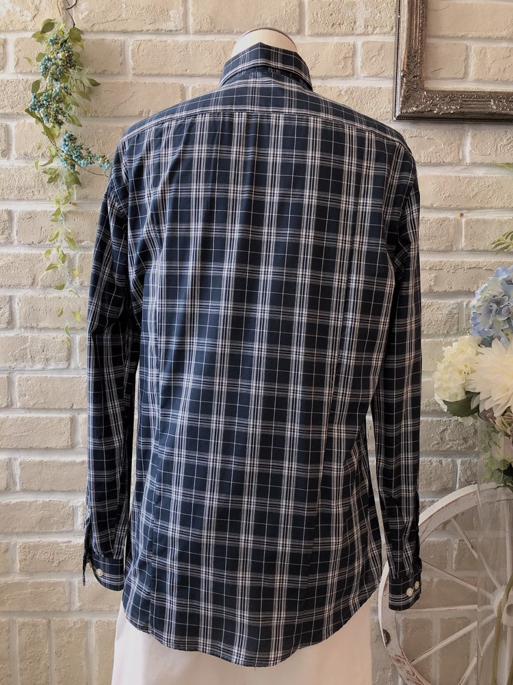 ネイビーブラック×ホワイトのタータンチェック柄のポリエステル混紡素材の長袖シャツ。レギュラーカラー。ブラック、ネイビー、ホワイト、グレー、ライトブルー、ブルー、ピンク、グリーン等の無地タキシードやジャケットと相性が良いです。二次会等でさらにカジュアルダウンしたい方はノージャケットのベストスタイルもおすすめです。クラシカルにもカジュアルにも着こなせます。イージーアイロン加工でシワいらず。袖口周りをボタンで調節できます。裾はラウンドカット。レギュラーフィット―動きやすいゆとりがあり、ウエスト部分をゆるやかに絞ったクラシックなフィット。着心地のよいテーラードシルエットを創り出します。