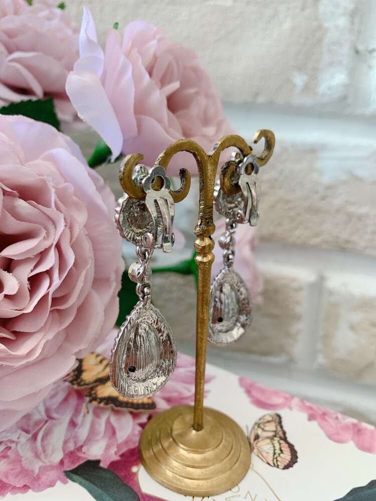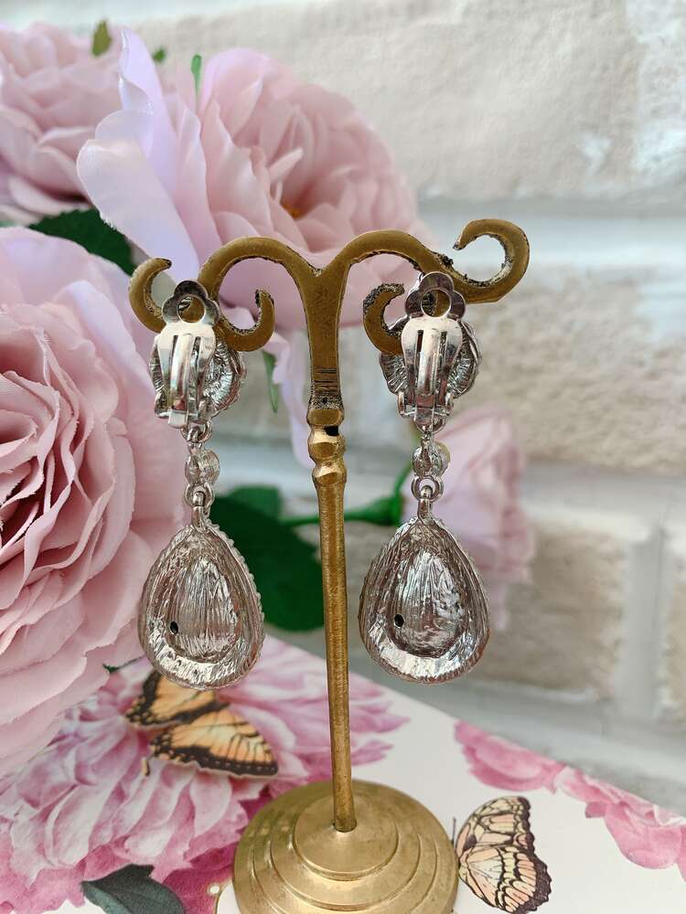 大粒のティアドロップ型(しずく型)のスワロフスキーが煌めくとてもゴージャスなイヤリングです。遠くからでも程よく目立つボリューム感と上品さをかねそなえているので、結婚式や食事会、パーティーなど様々なシーンでお使い頂けます。お耳元がよく見えるアップスタイルはもちろん、ダウンスタイルなどコンパクトなシルエットのヘアスタイルと相性バツグンです。とても煌びやかながらなので、シンプルなドレスと組み合わせれば、より一層お顔周りも華やかに引き立ちます。