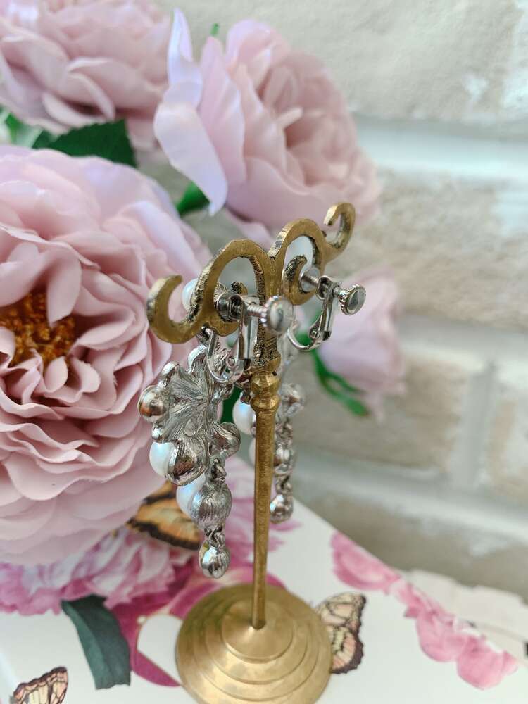 大きさや形の異なるパールとスワロフスキーをお花型に組み合わせたとてもキュートなイヤリングです。遠くからでも程よく目立つボリューム感と上品さをかねそなえているので、結婚式や食事会、パーティーなど様々なシーンでお使い頂けます。お耳元がよく見えるアップスタイルはもちろん、ダウンスタイルなどコンパクトなシルエットのヘアスタイルと相性バツグンです。とても煌びやかながらなので、シンプルなドレスと組み合わせれば、より一層お顔周りも華やかに引き立ちます。