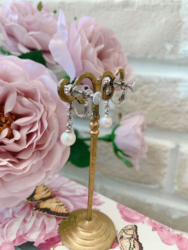 一粒のパールとスワロフスキーを組み合わせたとてもシンプルなイヤリングです。遠くからでも程よく目立つボリューム感と上品さをかねそなえているので、結婚式や食事会、パーティーなど様々なシーンでお使い頂けます。お耳元がよく見えるアップスタイルはもちろん、ダウンスタイルなどコンパクトなシルエットのヘアスタイルと相性バツグンです。とても煌びやかながらなので、シンプルなドレスと組み合わせれば、より一層お顔周りも華やかに引き立ちます。