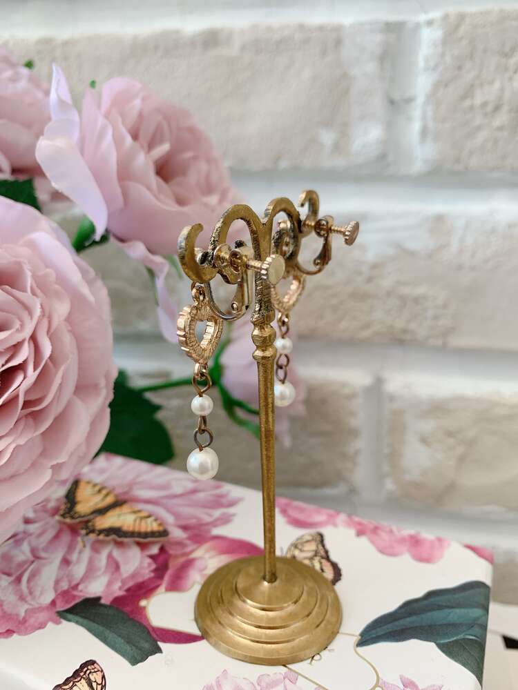 大きさや形の異なるパールとピンクスワロフスキーをハート型に組み合わせたとてもキュートなイヤリングです。遠くからでも目立つボリューム感と上品さをかねそなえているので、結婚式や食事会、パーティーなど様々なシーンでお使い頂けます。アップスタイルはもちろん、ダウンスタイルなどコンパクトなシルエットのヘアスタイルと相性バツグンです。とても煌びやかながらなので、シンプルなドレスと組み合わせれば、より一層お顔周りも華やかに引き立ちます。