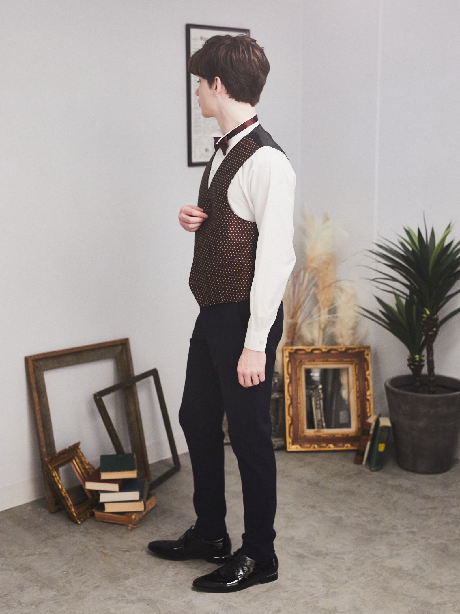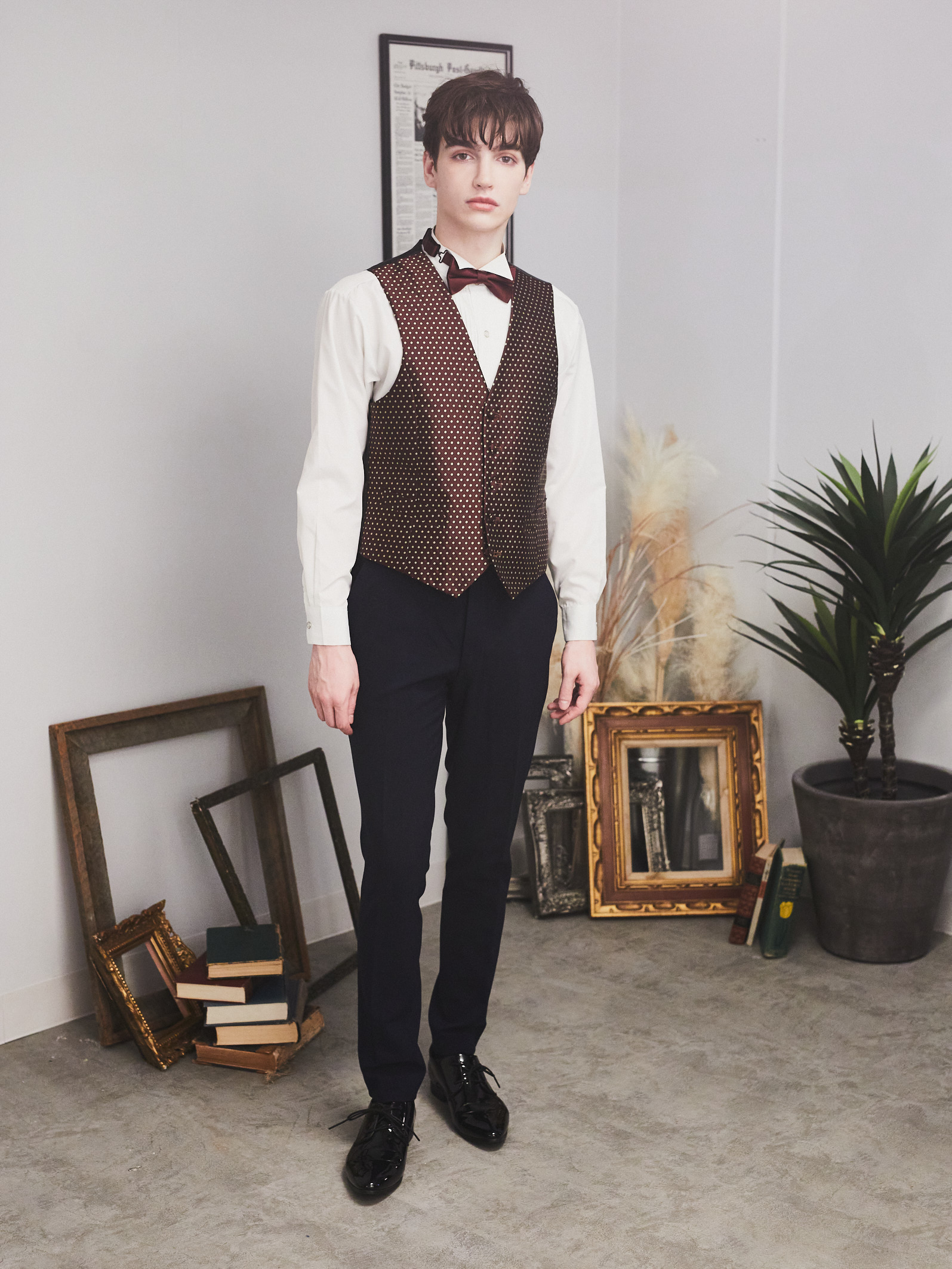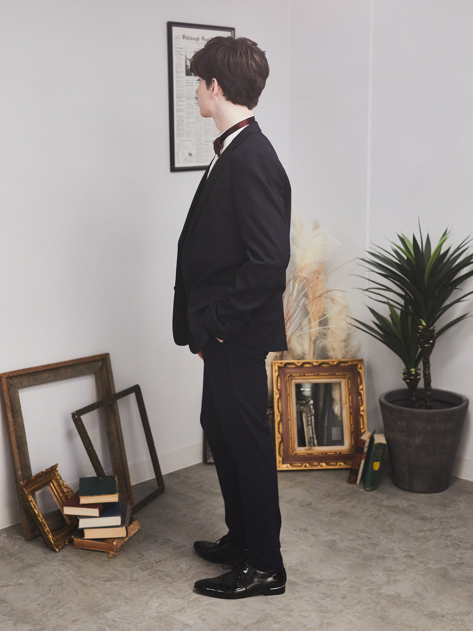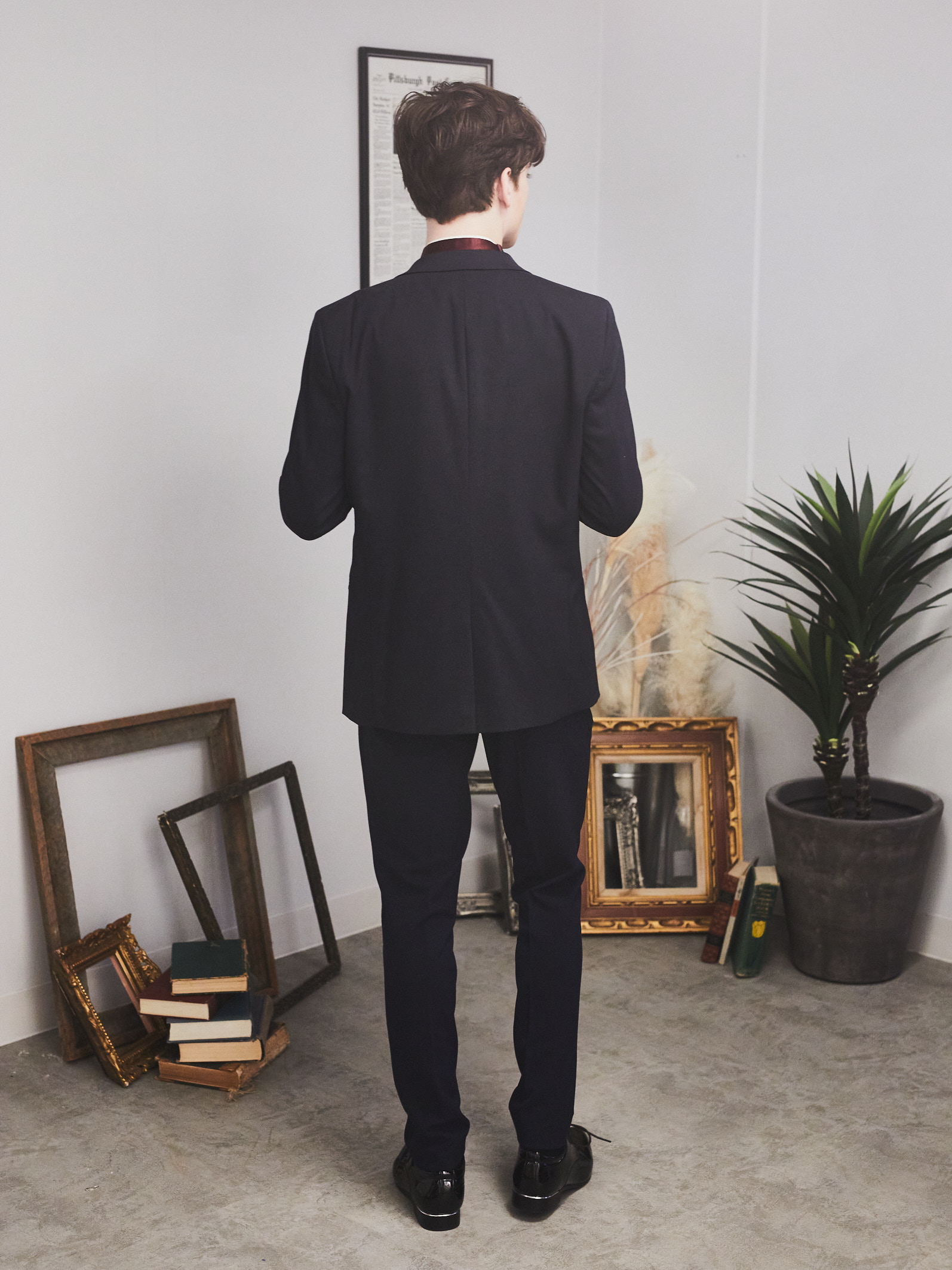 ネイビーのタキシードジャケットです。濃いめのネイビー色でサテン地の襟付き。ベストのみチェック柄や、ワインレッドやグレー、ホワイトなどのカラーベストを差し色として合わせるのもオススメです。白のパンツとのコーディネートもおしゃれです。合わせるシャツを水色やグレーシャツで合わせてカジュアルな二次会タキシードとしても素敵。また白のウィングカラーシャツを合わせればきちんとした結婚式や披露宴向けのフォーマルなコーディネートになります。二次会ウェディング・海外やフォトウェディング、前撮りにまで幅広いシーンでご使用いただけます。結婚式お呼ばれや会社の懇親会などのパーティーにも。オールシーズンに適してます。