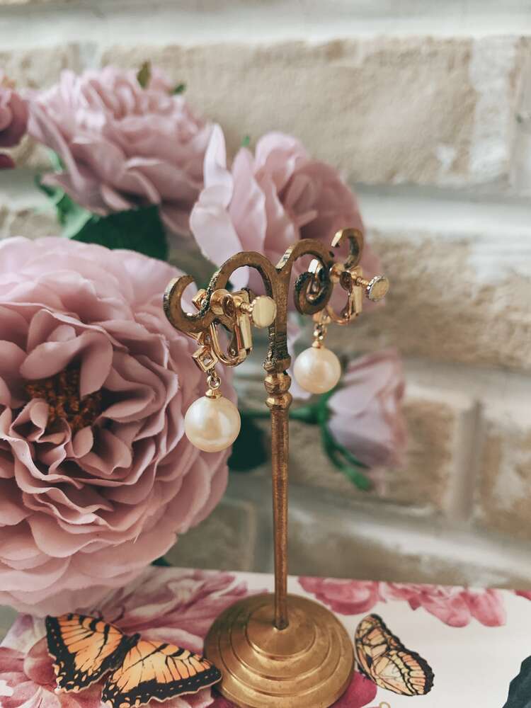 大粒パールとスクエア型の小粒スワロフスキーを組み合わせたイヤリングです。程よいボリューム感と上品さをかねそなえているので、結婚式や食事会、パーティーなど様々なシーンでお使い頂けます。ゴールド肌なじみも良いので、お耳元がよく見えるアップスタイルはもちろん、ダウンスタイルなどコンパクトなシルエットのヘアスタイルと相性バツグンです。シンプルなドレスと組み合わせれば、より一層お顔周りも華やかに引き立ちます。