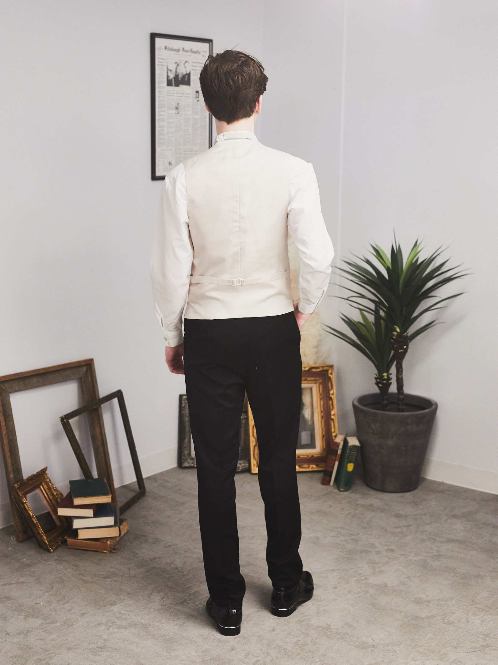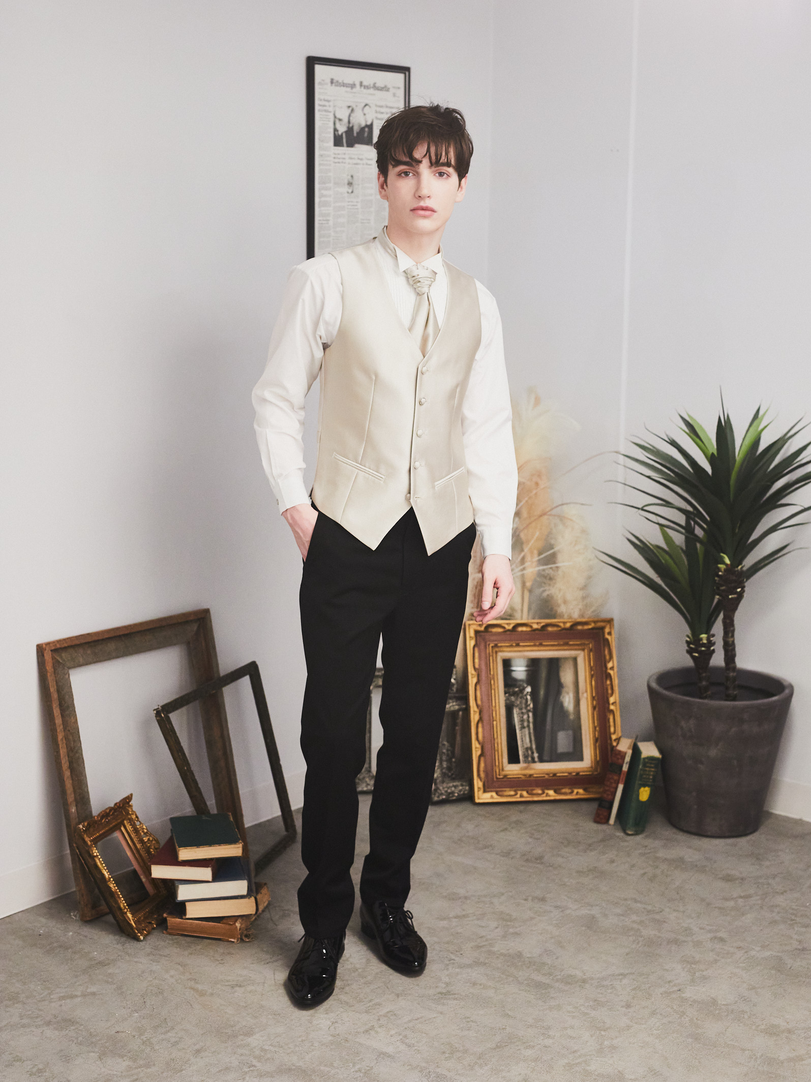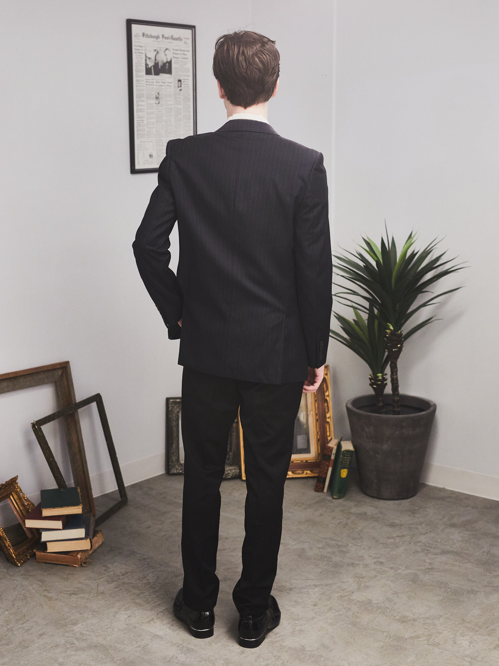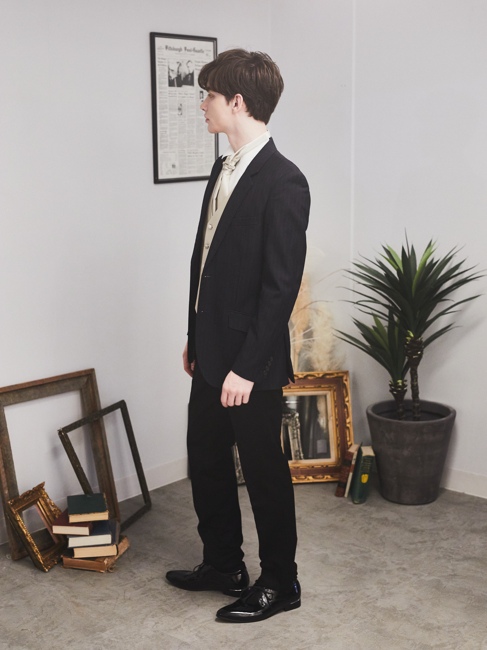 ネイビー地にストライプが入ったジャケットです。ホワイトデニムパンツとの相性も良く、カジュアルにもシックにも着こなせます。ベストはワインレッド、グレー、スモーキーピンク、ブラック、ブルーなどのベストを差し色として合わせるのもオススメです。合わせるシャツを花柄、ネイビー、ブラック、グレーシャツで合わせて二次会タキシードとしても素敵。また白のウィングカラーシャツやブラックパンツを合わせればきちんとした結婚式や披露宴向けのフォーマルなコーディネートになります。二次会ウェディング・海外やフォトウェディング、前撮りにまで幅広いシーンでご使用いただけます。結婚式お呼ばれや会社の懇親会などのパーティーにも。オールシーズンに適してます。