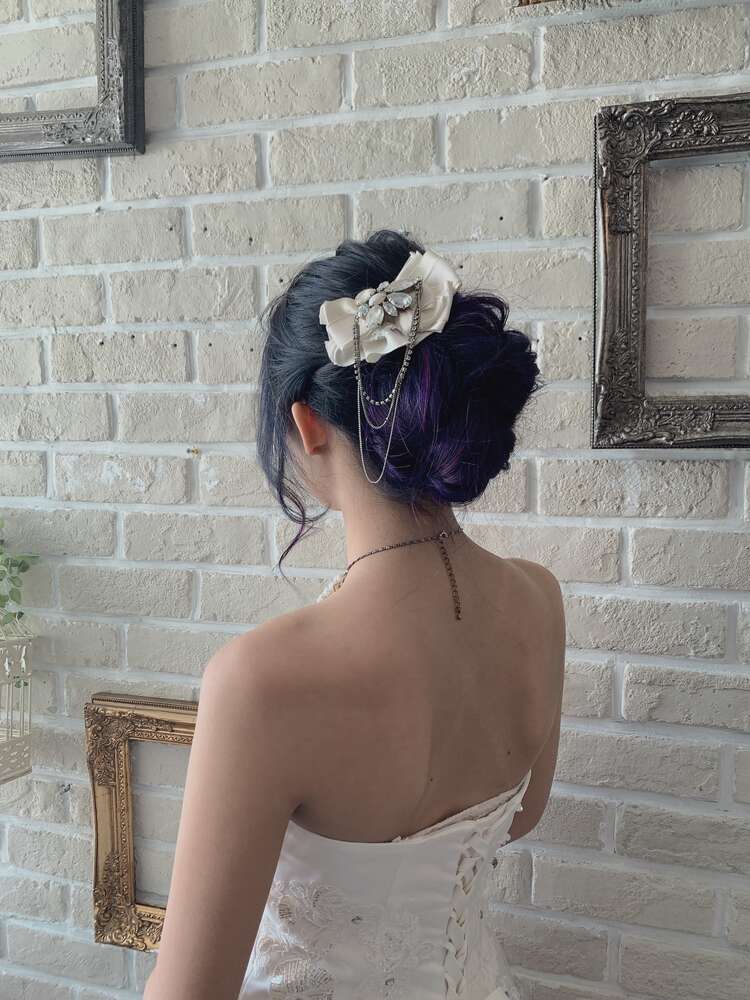 ホワイトリボン×ビジュー×チェーンヘッドアクセ