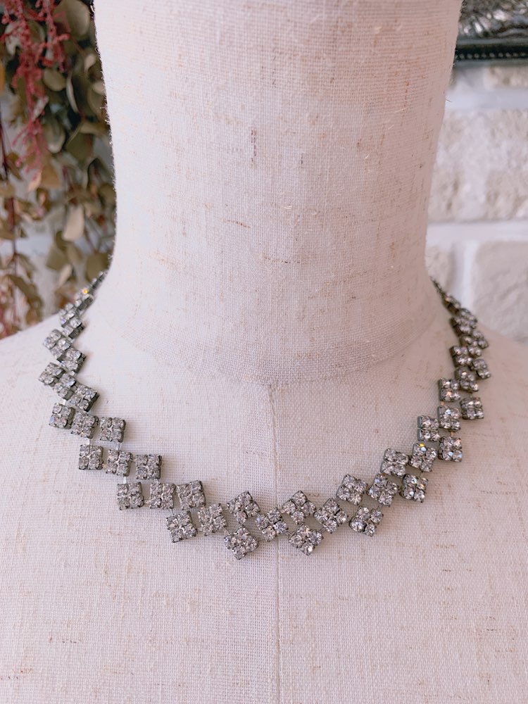 シンプルなスワロフスキーを組み合わせたネックレスです。シルバーは、煌びやかながらも肌に馴染んで落ち着いた雰囲気にも良く合います。パーティーやお祝いの席にぴったりのほどよいシンプル感と華やかさが使いやすさ◎。 胸元のあきが気になるドレスにプラスすれば、デコルテを華やかに演出してくれます。調節可能なアジャスター付き。