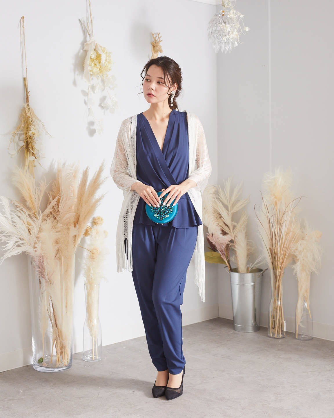 ネイビーペプラムパンツドレス
