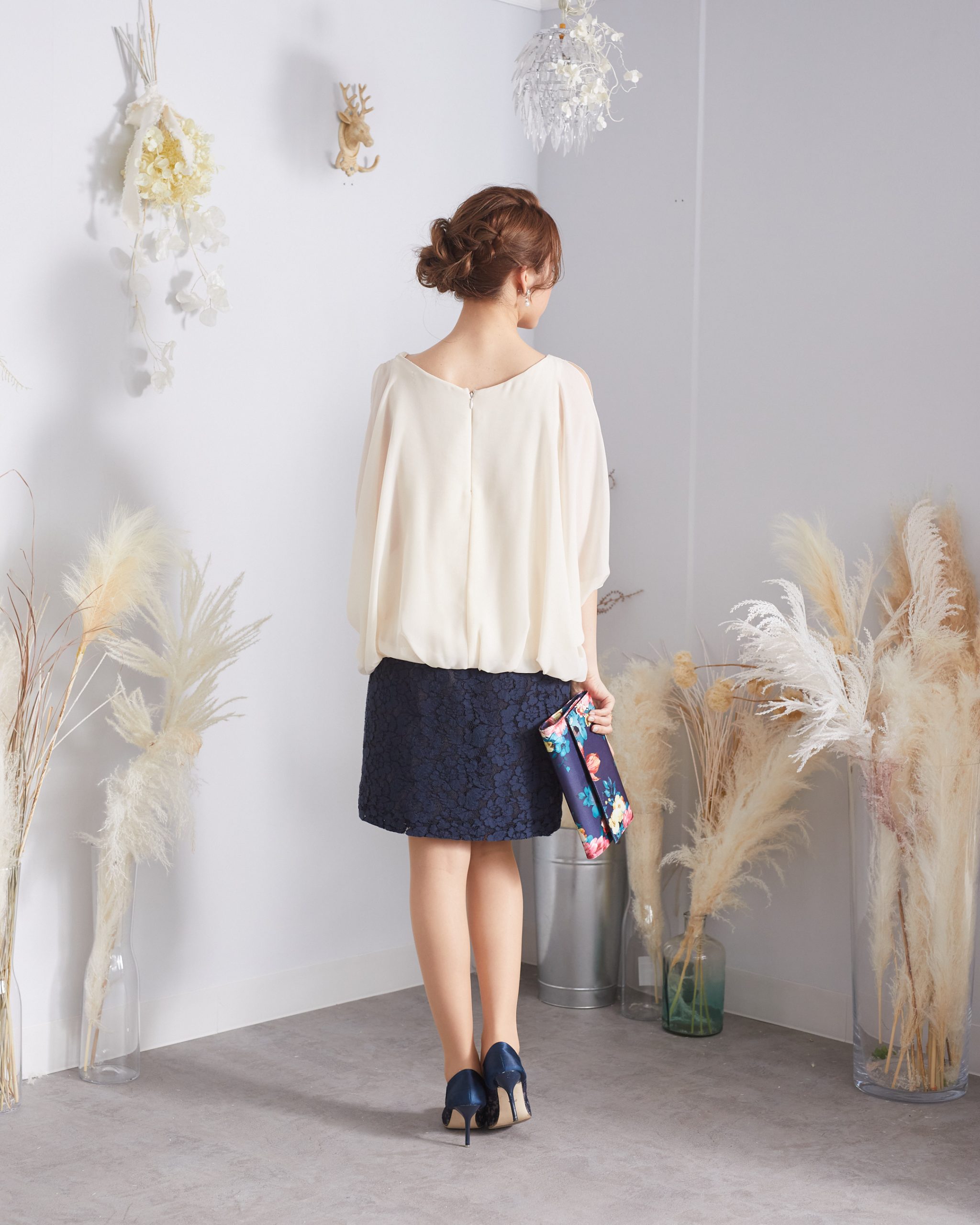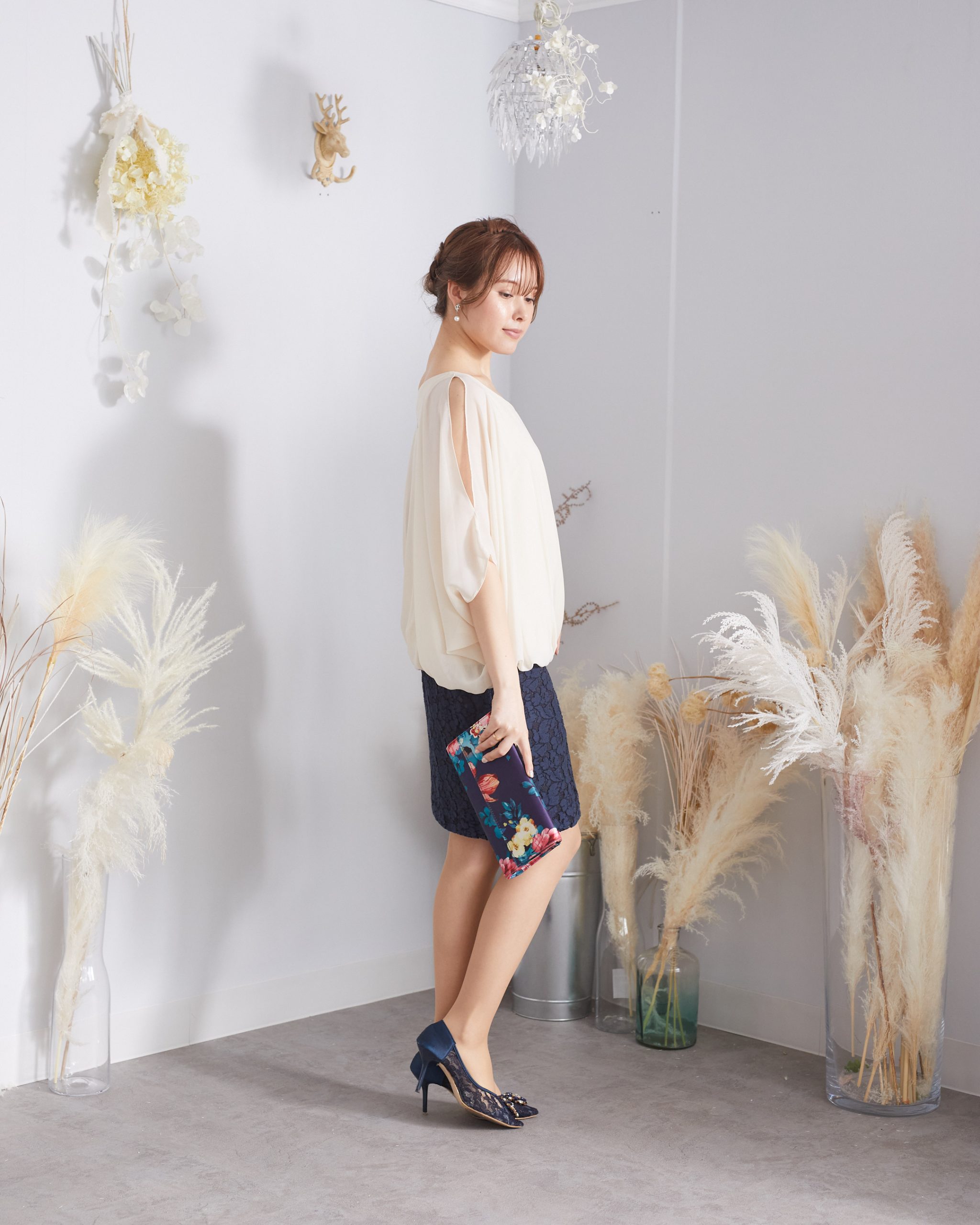 ★オフホワイトドルマンスリーブ×ネイビータイトスカート