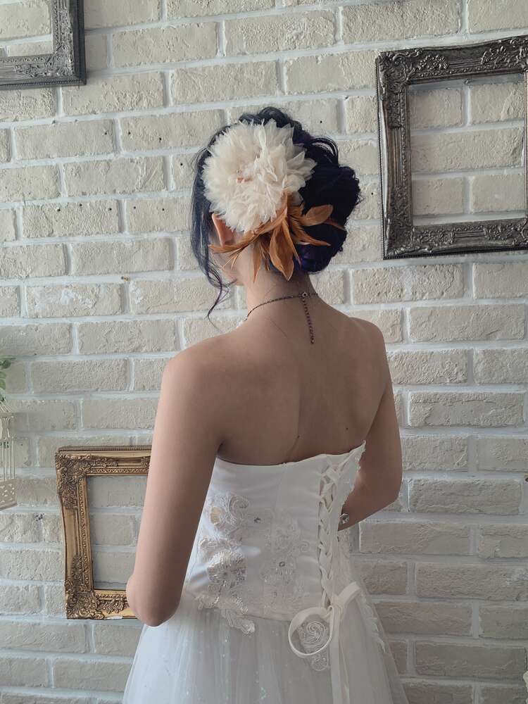 アイボリーフラワー×ブラウンフェザーヘッドアクセ