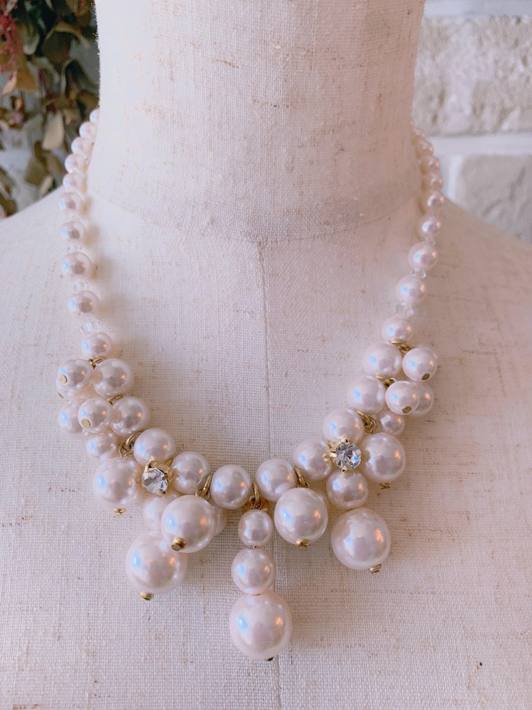 大きさの異なるパールとダイヤを組み合わせたネックレスです。パールは、肌に馴染んで落ち着いた雰囲気にも良く合います。パーティーやお祝いの席にぴったりのほどよいボリューム感と華やかさが使いやすさ◎。 胸元のあきが気になるドレスにプラスすれば、デコルテを華やかに演出してくれます。調節可能なアジャスター付き。