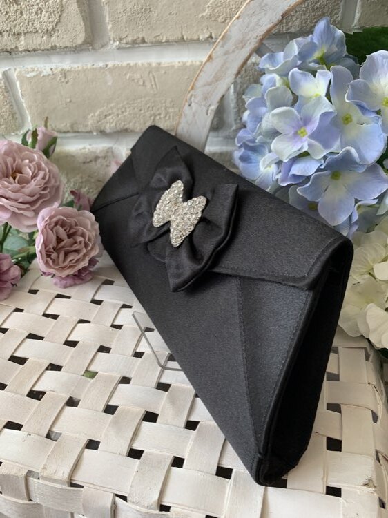 スワロフスキーのリボンがキュートなブラックのクラッチバックです。シンプルな黒のバックは合わせやすく、スワロフスキーの輝きが華やかな印象を与えてくれます。赤やピンクのドレスと合わせて、レトロなテイストやBarbie風コーディネートにもオススメです。チェーン付きの2way仕様なので、利用シーンによって肩掛けや手持ちなど、持ち方を替えられるのも嬉しいポイントです。結婚式や二次会のお呼ばれにはもちろん、謝恩会や成人式など様々なシーンでご利用頂けます。