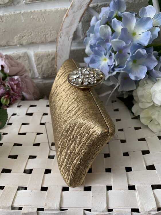 華やかなゴールドのカクテルバッグです。取っ手のスワロフスキーも、煌びやかな雰囲気を放ち、上品な演出を叶えてくれます。小振りでシンプルなデザインでどんなコーディネートにも合わせやすく、シックな装いに仕上がる為、クールなテイストのコーディネートに仕上がります。エレガントな雰囲気を演出してくれるので、30~40代のミセスやご親族様にもオススメです。チェーン付きの2way仕様なので、利用シーンによって肩掛けや手持ちな、持ち方を替えられるのも嬉しいポイントです。結婚式や二次会のお呼ばれにはもちろん、食事会や会社の懇親会など様々なシーンでご利用頂けます。