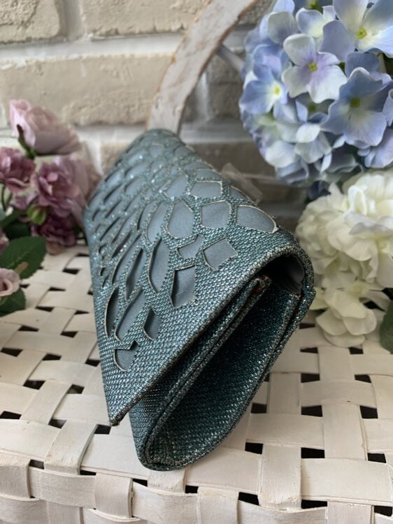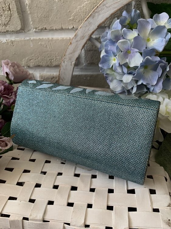 綺麗なターコイズブルーのクラッチバックです。キラキラのラメ感に蓮のお花の切り抜きのデザインが華やかで、エレガントな雰囲気を演出してくれます。ブラックやネイビーのドレスやシルバー系のシックな装いとも相性が良い為、30~40代のミセスやご親族様にもオススメです。チェーン付きの2way仕様なので、利用シーンによって肩掛けや手持ちなど、持ち方を替えられるのも嬉しいポイントです。結婚式や二次会のお呼ばれにはもちろん、食事会や会社の懇親会など様々なシーンでご利用頂けます。