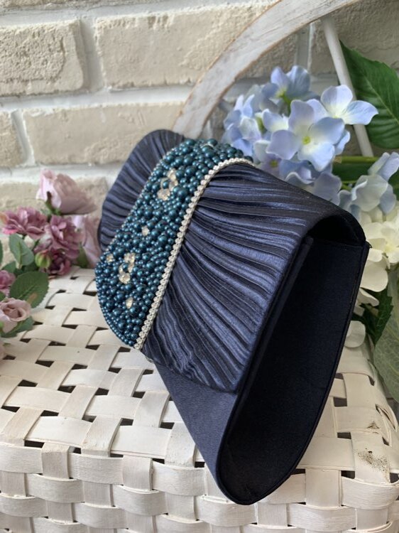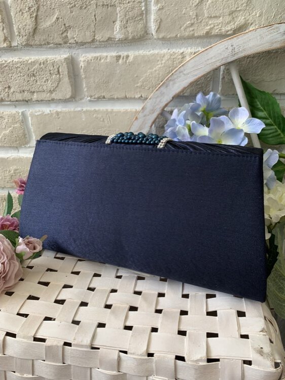 華やかでボリュームあるパールビジュがエレガントなネイビーカラーのバッグです。前面に敷き詰めれれたパールベルトが煌びやかな雰囲気を放ち上品な演出を叶えてくれます。シンプルなドレスもゴージャスバッグをONすれば、華やかさとお洒落感をブラッシュアップ。チェーン付きの2way仕様なので、利用シーンによって持ち方を替えられるのも嬉しいポイントです。袱紗が入る大きさで、収納力もあり抜群の機能性。結婚式や二次会、各種パーティなど華やかな場面にぴったりなバッグです。