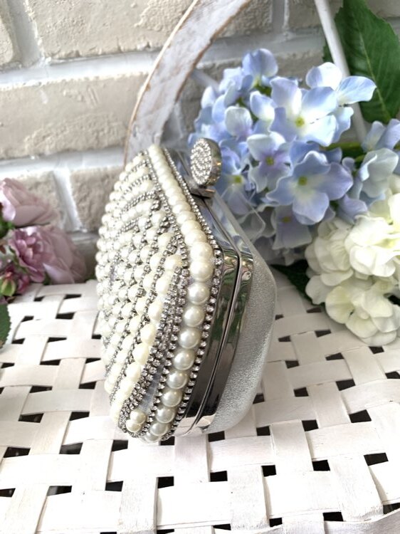 プリンセスのようなドレッシーなビジューのクラッチバッグです。上品なパールとスワロフスキーの輝きがと煌びやかで、エレガントな雰囲気の演出を叶えてくれます。小振りでシンプルなデザインでどんなコーディネートにも合わせやすく、シックな装いに仕上がる為、クールなテイストのコーディネートに仕上がります。エレガントな雰囲気を演出してくれるので、30~40代のミセスやご親族様にもオススメです。チェーン付きの2way仕様なので、利用シーンによって肩掛けや手持ちな、持ち方を替えられるのも嬉しいポイントです。結婚式や二次会のお呼ばれにはもちろん、食事会や会社の懇親会など様々なシーンでご利用頂けます。