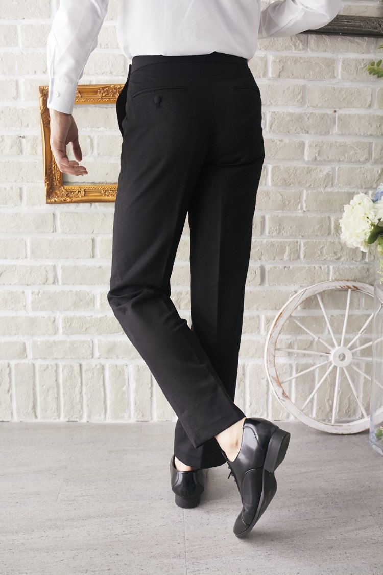ブラックのパンツはマットな仕上がりで、とても上品な素材です。セットのジャケットと合わせれば暗めな色味でも華やかな印象になります。挙式などにもお使い頂けるデザインとなっておりますので、前撮り写真撮影にもおすすめです。生地感はそれ程厚くないので、長時間着ていても負担は少ないと思います。披露宴のお色直し、二次会、1.5次会、リゾートウェディング、レストランウェディング、パーティー、様々なシーンでご利用頂けます。