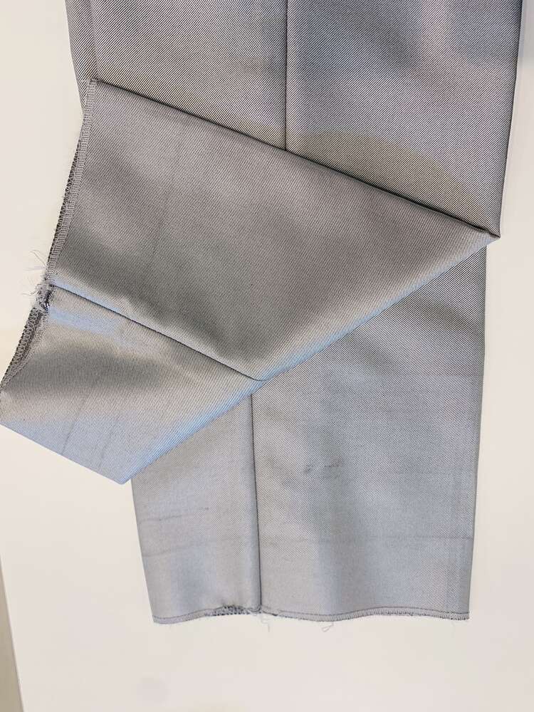 パンツは光沢感のある上品な素材です。セットのジャケットと合わせれば挙式などにもお使い頂けるデザインとなっておりますので、前撮り写真撮影にもおすすめです。生地感はそれ程暑くないで、長時間着ていても負担は少ないと思います。パンツウェストにはアジャスター付きなので、お客様の丁度いいサイズに合わせる事が可能。