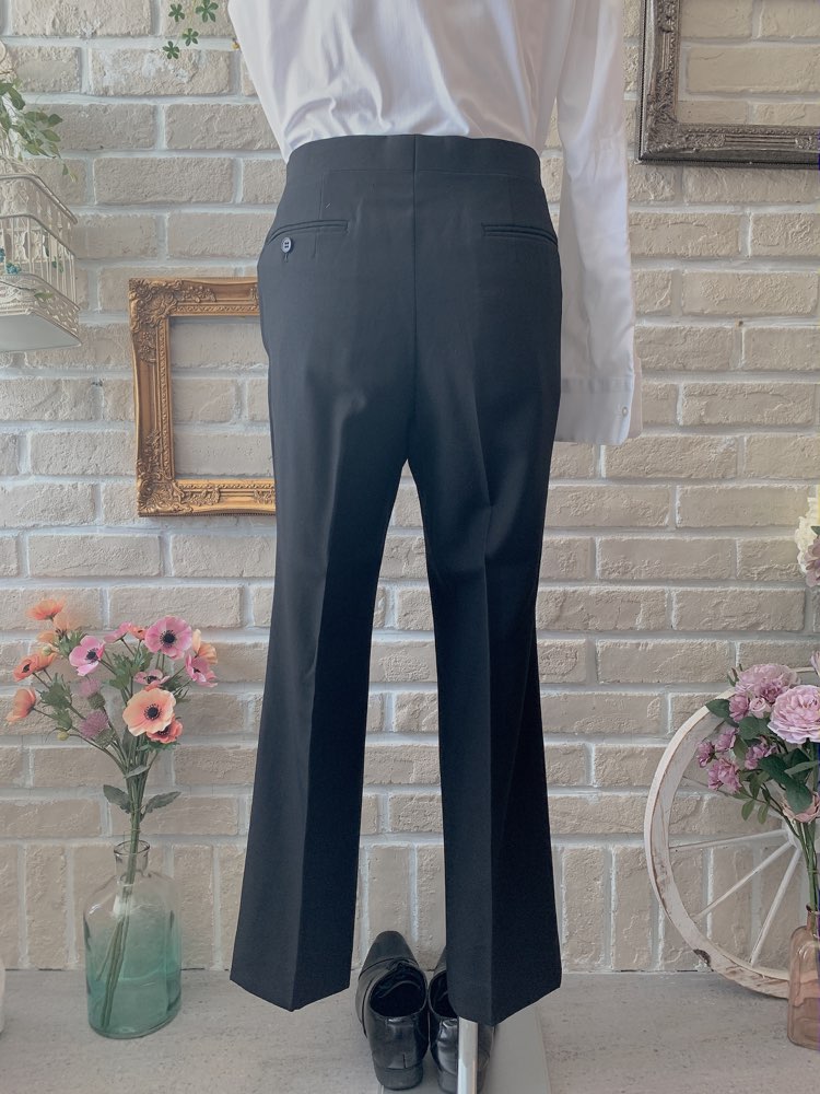 ブラックのパンツはマットな仕上がりで、とても上品な素材です。セットのジャケットと合わせれば暗めな色味でも華やかな印象になります。挙式などにもお使い頂けるデザインとなっておりますので、前撮り写真撮影にもおすすめです。生地感はそれ程厚くないので、長時間着ていても負担は少ないと思います。披露宴のお色直し、二次会、1.5次会、リゾートウェディング、レストランウェディング、パーティー、様々なシーンでご利用頂けます。