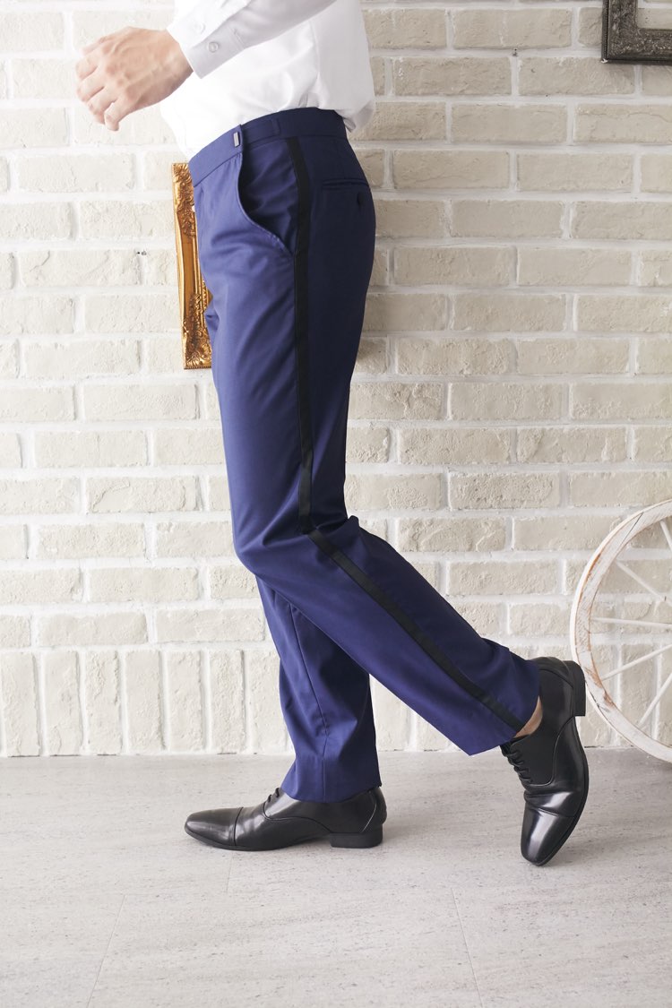 ネイビー×サイドブラックラインタキシードパンツ