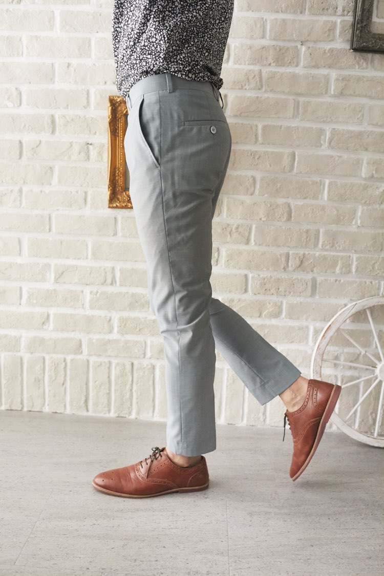ダスティーブルーのカジュアルパンツ。トップスには、カラーのシャツや、ベストなど合わせるとより一層おしゃれなカジュアルタキシードコーディネートになります。二次会や1.5次会、ビーチウェディング、レストランウェディング、ガーデンウェディング、様々なシーンでご利用頂けます。また、カジュアルスタイルの前撮り写真撮影にもおすすめ致します。柔らかな素材感なので長時間着ていても負担は少ないと思います。