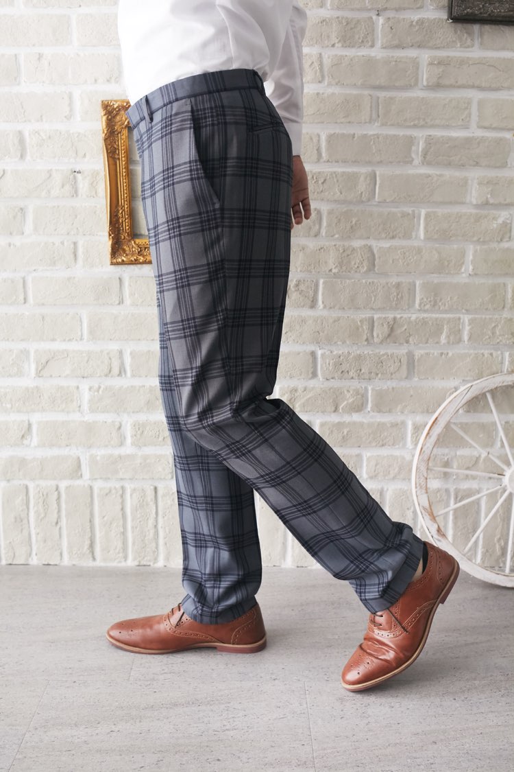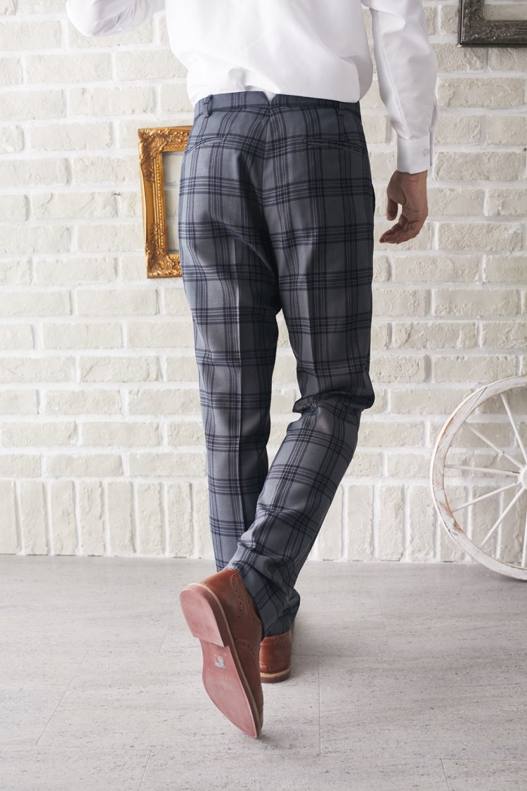 グレンチェック柄のカジュアルパンツ。トップスには、カラーのシャツや、ベストなど合わせるとより一層おしゃれなカジュアルタキシードコーディネートになります。二次会や1.5次会、ビーチウェディング、レストランウェディング、ガーデンウェディング、様々なシーンでご利用頂けます。また、カジュアルスタイルの前撮り写真撮影にもおすすめ致します。柔らかな素材感なので長時間着ていても負担は少ないと思います。秋冬におすすめのパンツです。
