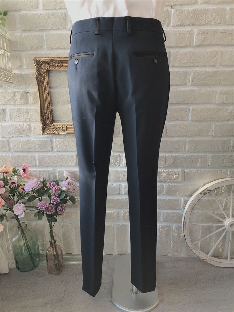 ネイビー無地のシンプルパンツ。トップスには、柄やカラーのシャツや、ベストなど合わせるとより一層おしゃれなカジュアルタキシードコーディネートになります。二次会や1.5次会、ビーチウェディング、レストランウェディング、ガーデンウェディング、様々なシーンでご利用頂けます。また、カジュアルスタイルの前撮り写真撮影にもおすすめ致します。柔らかな素材感なので長時間着ていても負担は少ないと思います。
