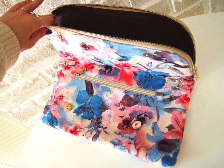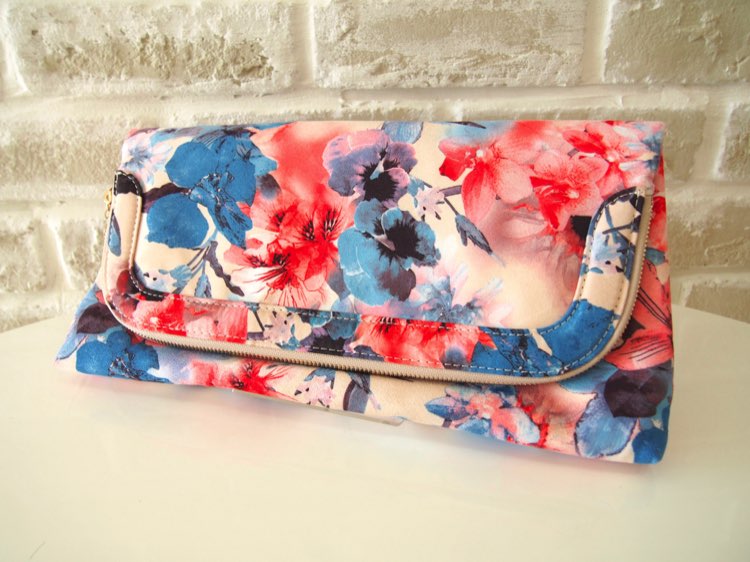 花柄のフェイクスエード生地を使用した大きなクラッチバッグ。落ち着きのある質感に鮮やかで優しげなカラーリングの花柄が、大人でカジュアルなイメージ。幅があるので、普通のクラッチバッグに比べて手荷物が少し多めに入るのは嬉しいですよね!大きさがあるタイプはカジュアルな雰囲気に見えるので、合わせるドレスの種類もさらっとカジュアルで、コンパクトなシルエットのものがおすすめ。パンツドレスや手持ちのお洋服との組み合わせにも◎です。コーディネートにメリハリを出すアイテムとして、カジュアルなパーティーやちょっとしたドレスアップでのお出かけなどにお使いいただけます。