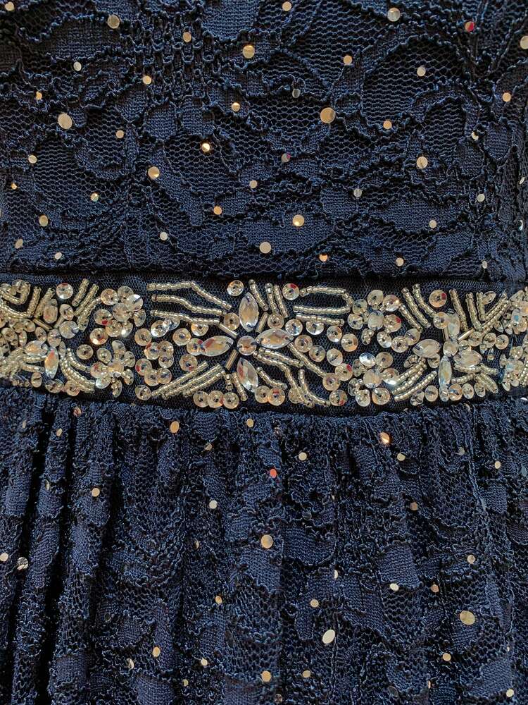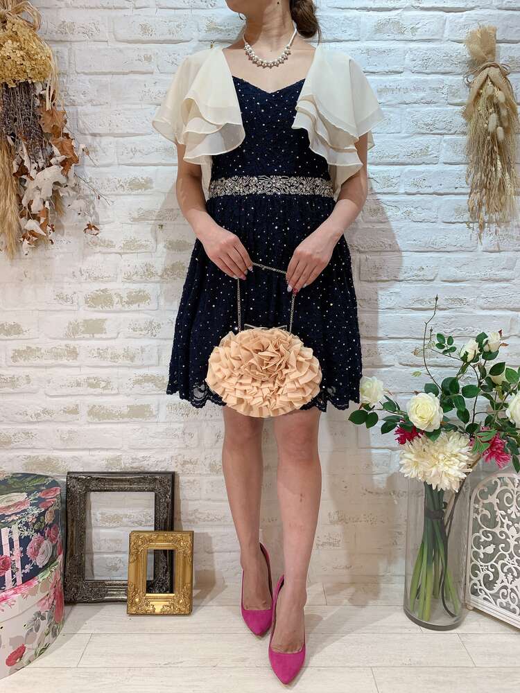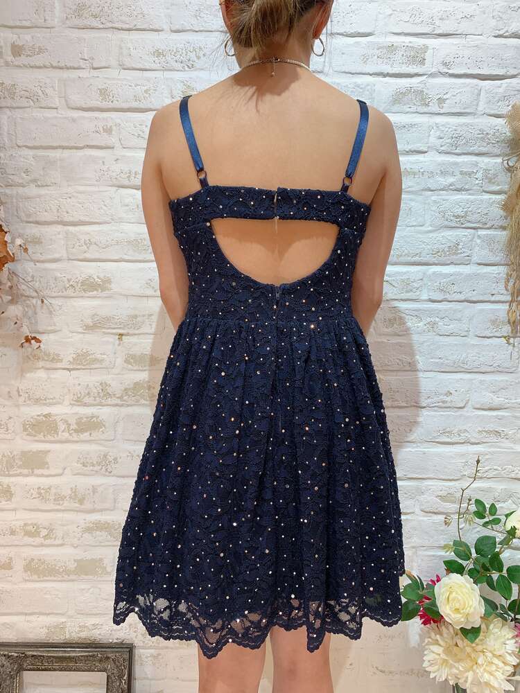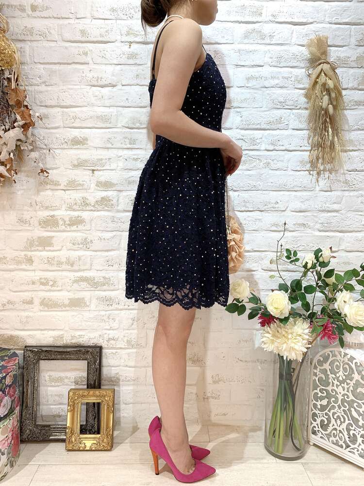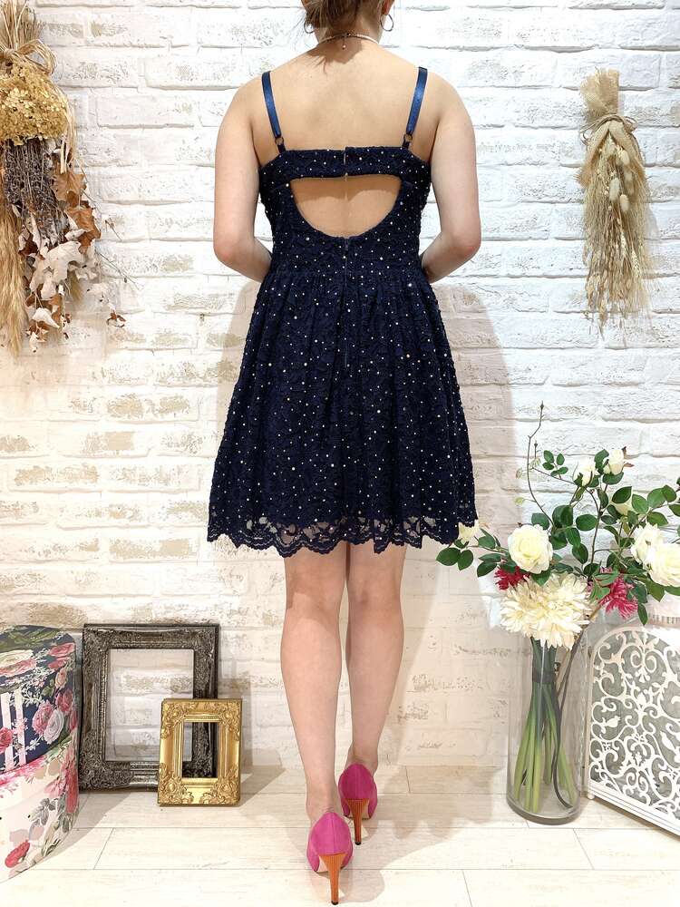 きらきらネイビーオープンバックレースキャミドレス