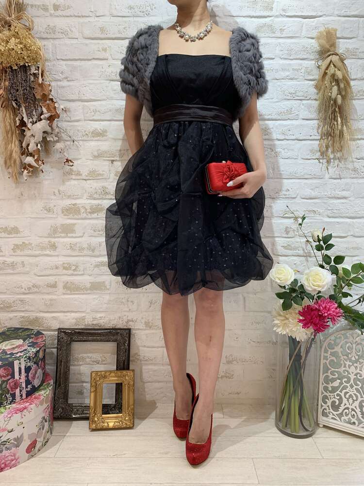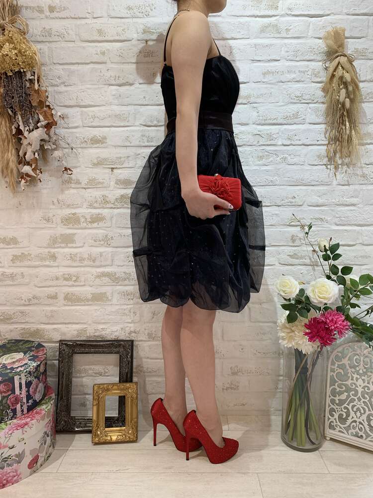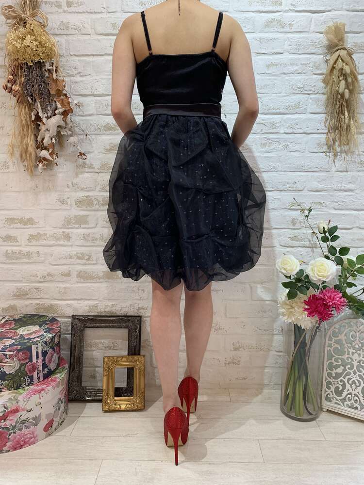 グリッターボリュームスカートストラップ付ドレス