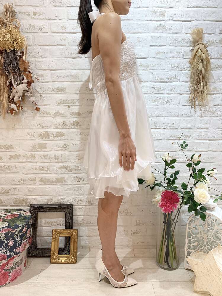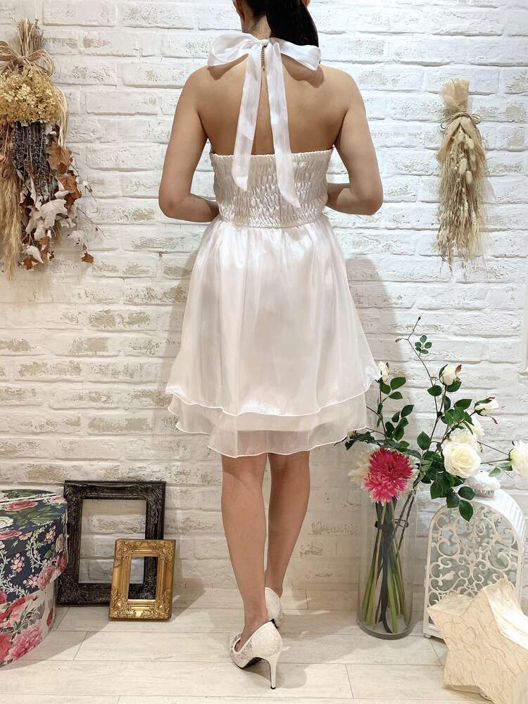 ホワイトラピュタ柄スカートてかりミニベアドレス