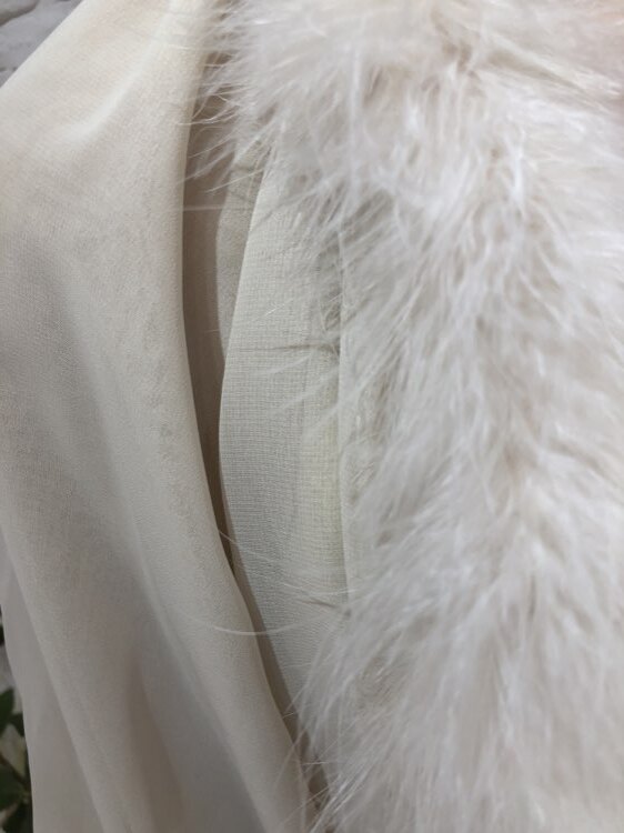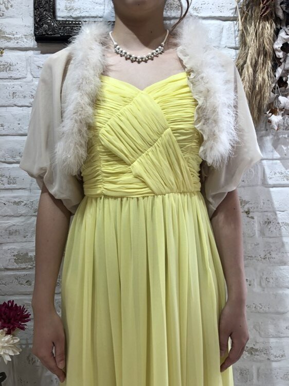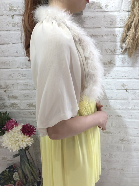 秋冬におすすめのファー付きベージュカラーのボレロです。ふんわりとしたファーはお顔周りを華やかに演出してくれます。おちついたベージュカラーは20代~50代、60代と幅広い年代の方に着て頂けます。アイボリー系ベージュ系のボレロは比較的どんなカラーのドレスにもあわせやすいです。謝恩会、各種パーティ、お呼ばれ、お食事会など様々なシーンにプラスして頂ける商品です。サイズは目安になりますので必ず表記している実寸サイズをご確認ください。