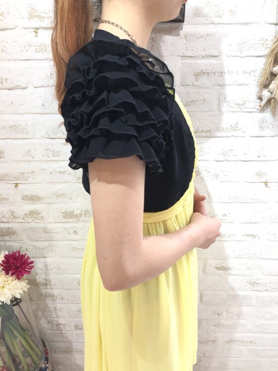 ブラックカラーのボレロです。お袖がフリルになっておりシンプルなデザインながらも華やかさをプラスしてくれます。生地は若干ストレッチがきいているさらっとした素材になります。しっかりとした生地ですがもたつきが無いため、1年中着用して頂けます。結婚式参列、各種パーティ、お呼ばれ、お食事会など様々なシーンにプラスして頂ける商品です。サイズは目安になりますので必ず表記している実寸サイズをご確認ください。